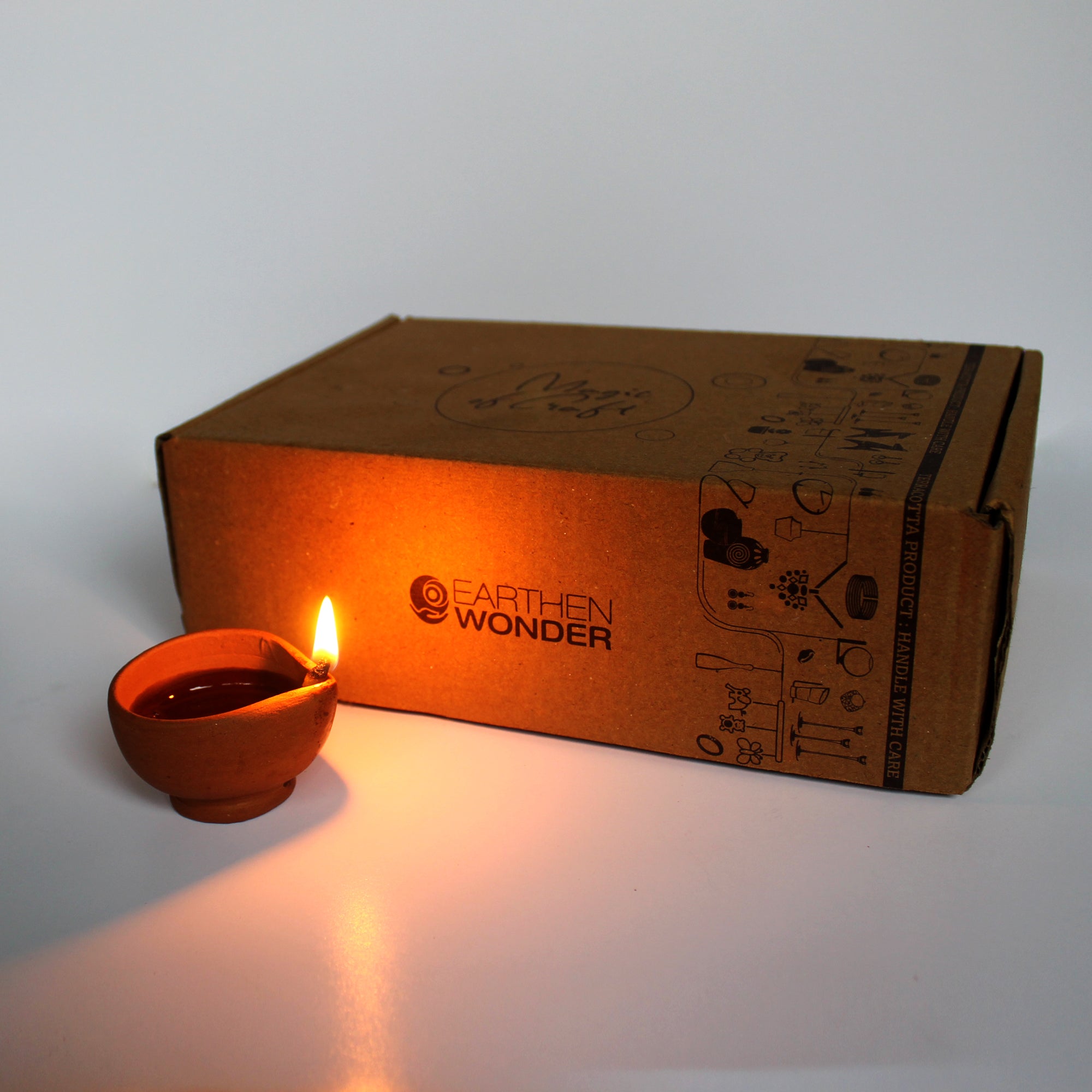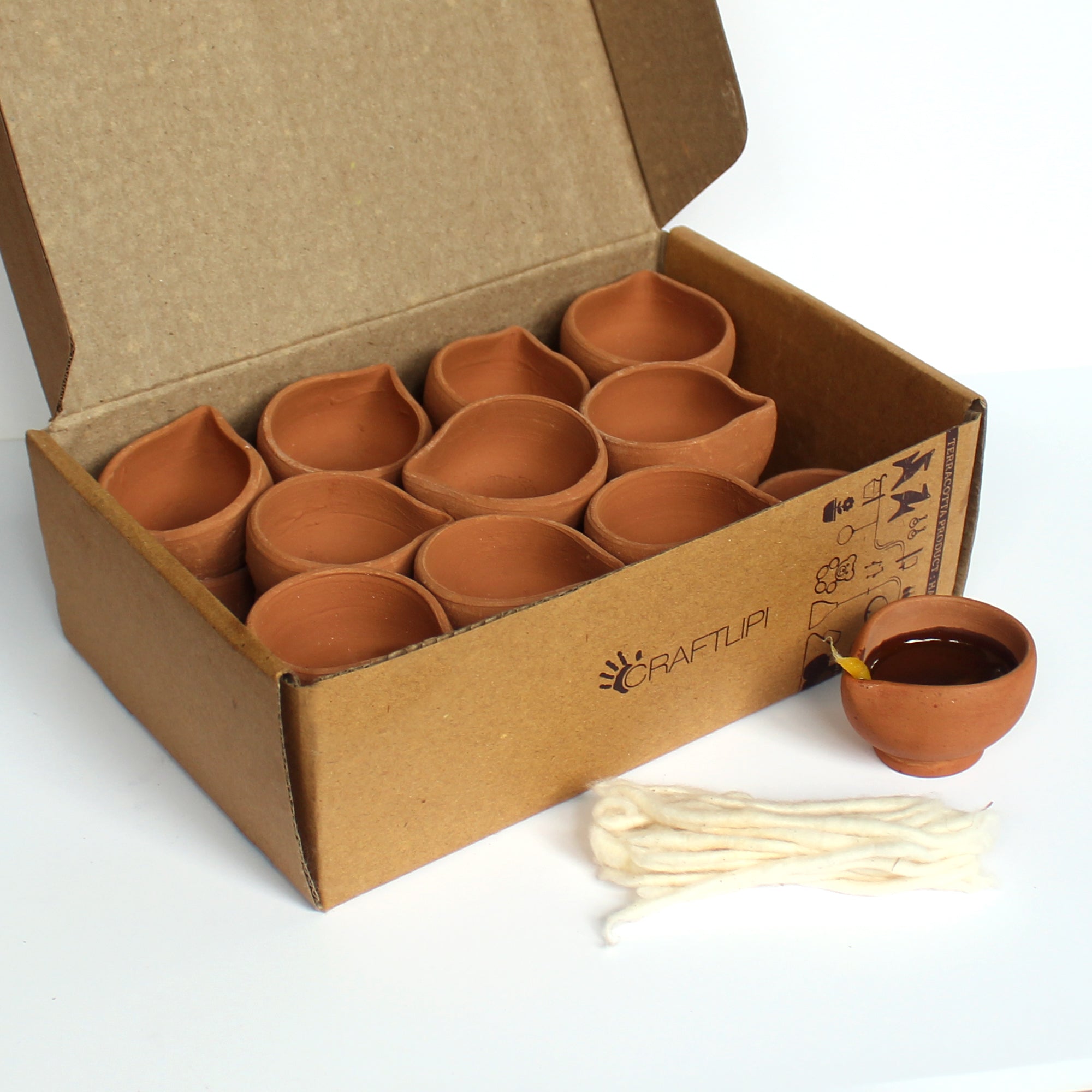 TRADITIONAL CLAY DIYA : Diwali Special - Set Of 20 Diyas & Cotton Wicks