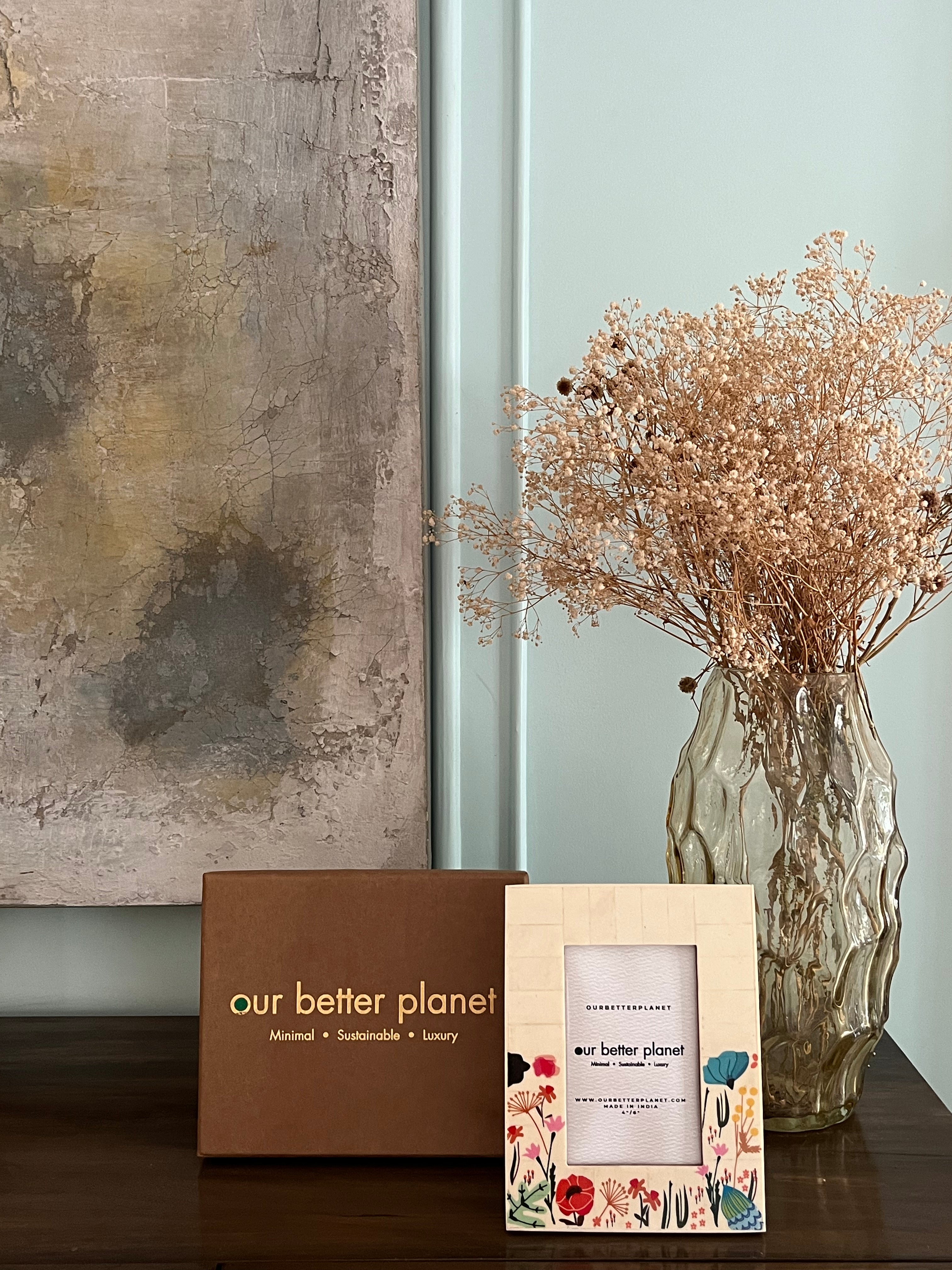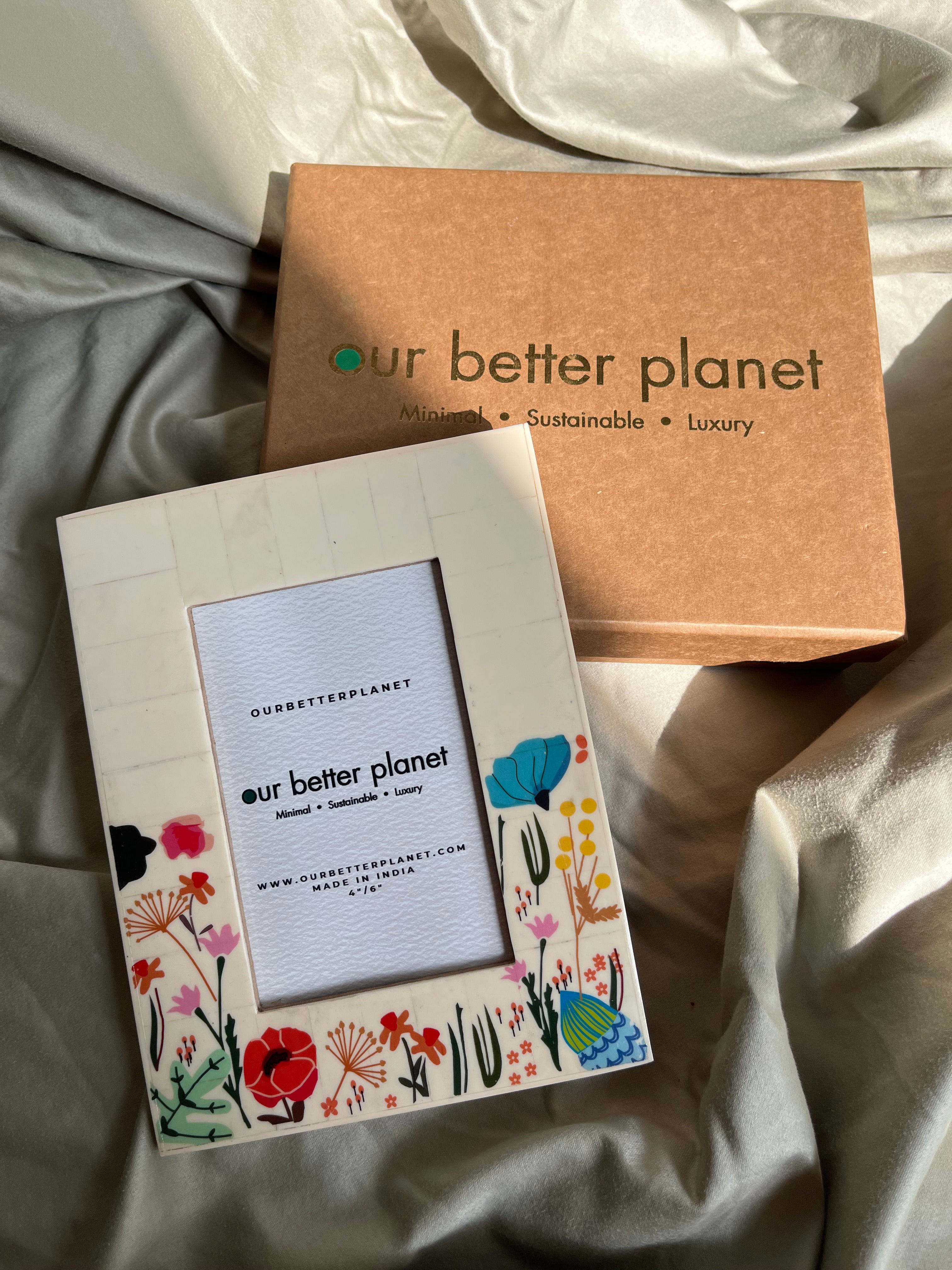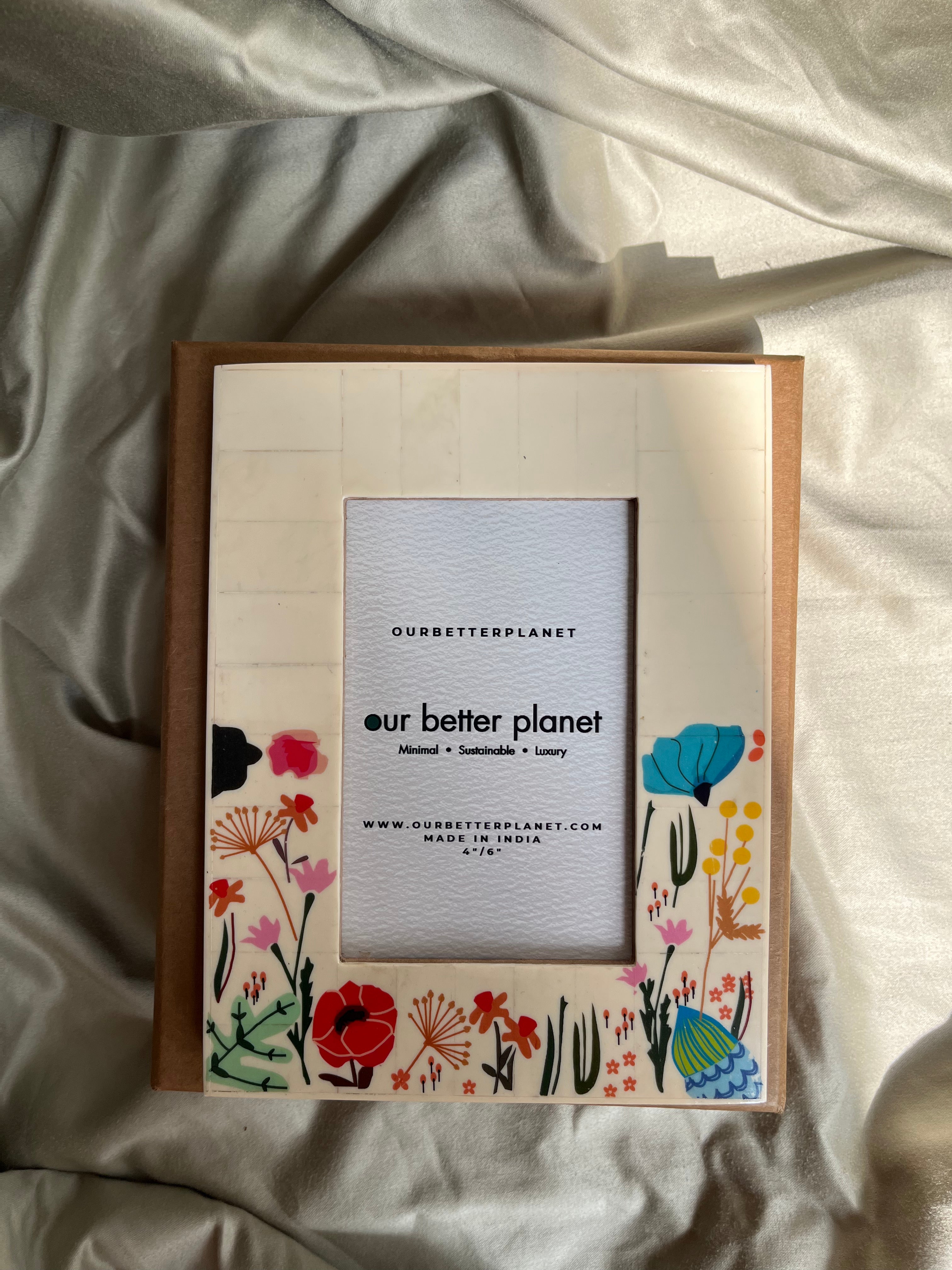 Handcrafted Multicolor Resin & Wood Photo Frame for Table