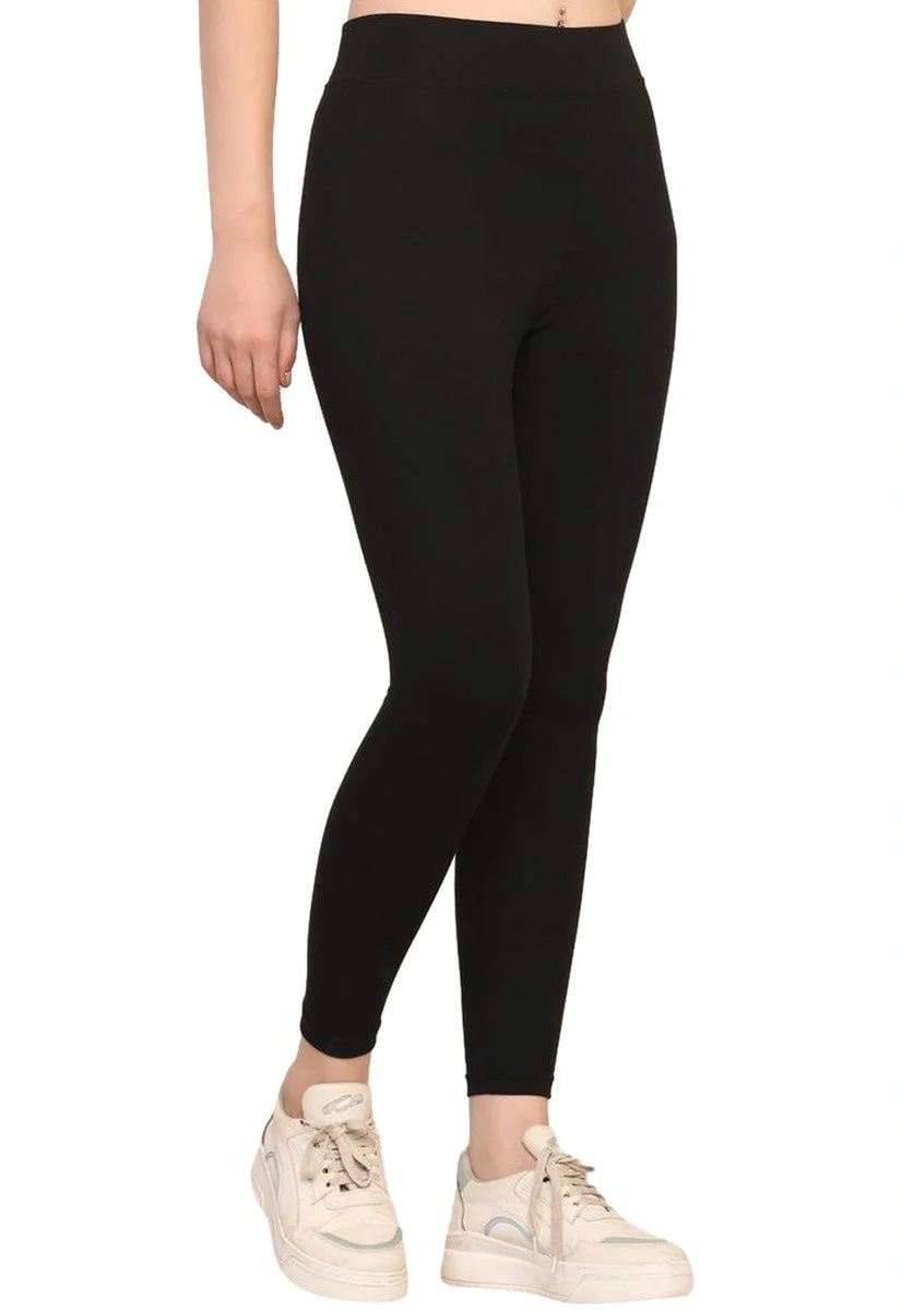 Yoga Pants High Waist Cotton Fabric Stretchable Black Gym Tights | Pack Of 1