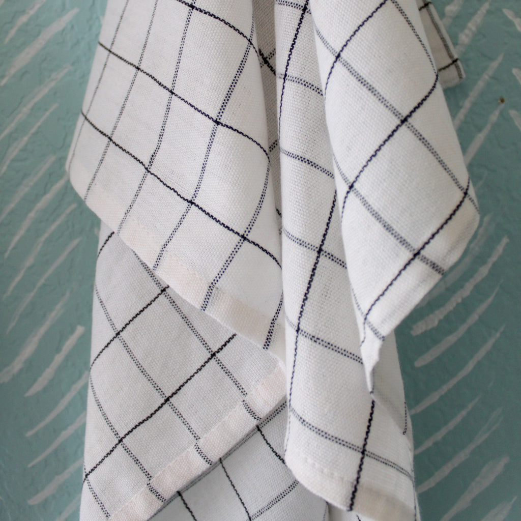 An elegant and classic kitchen towel in black and white pin-stripe checks. Easy to clean with a clean minimalistic design.