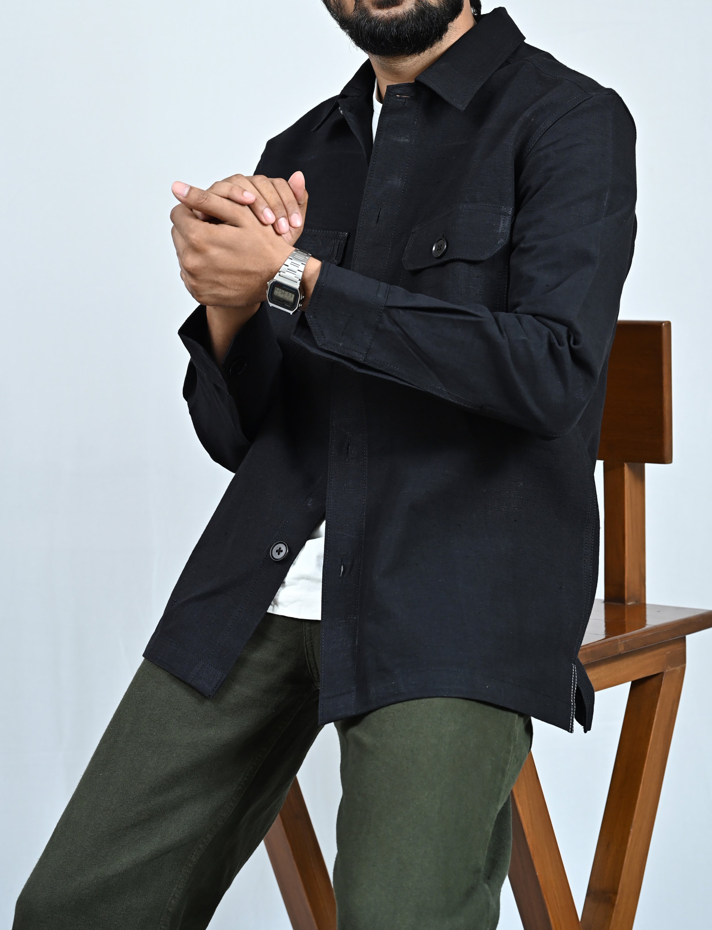 Classic Handwoven Overshirt - Black