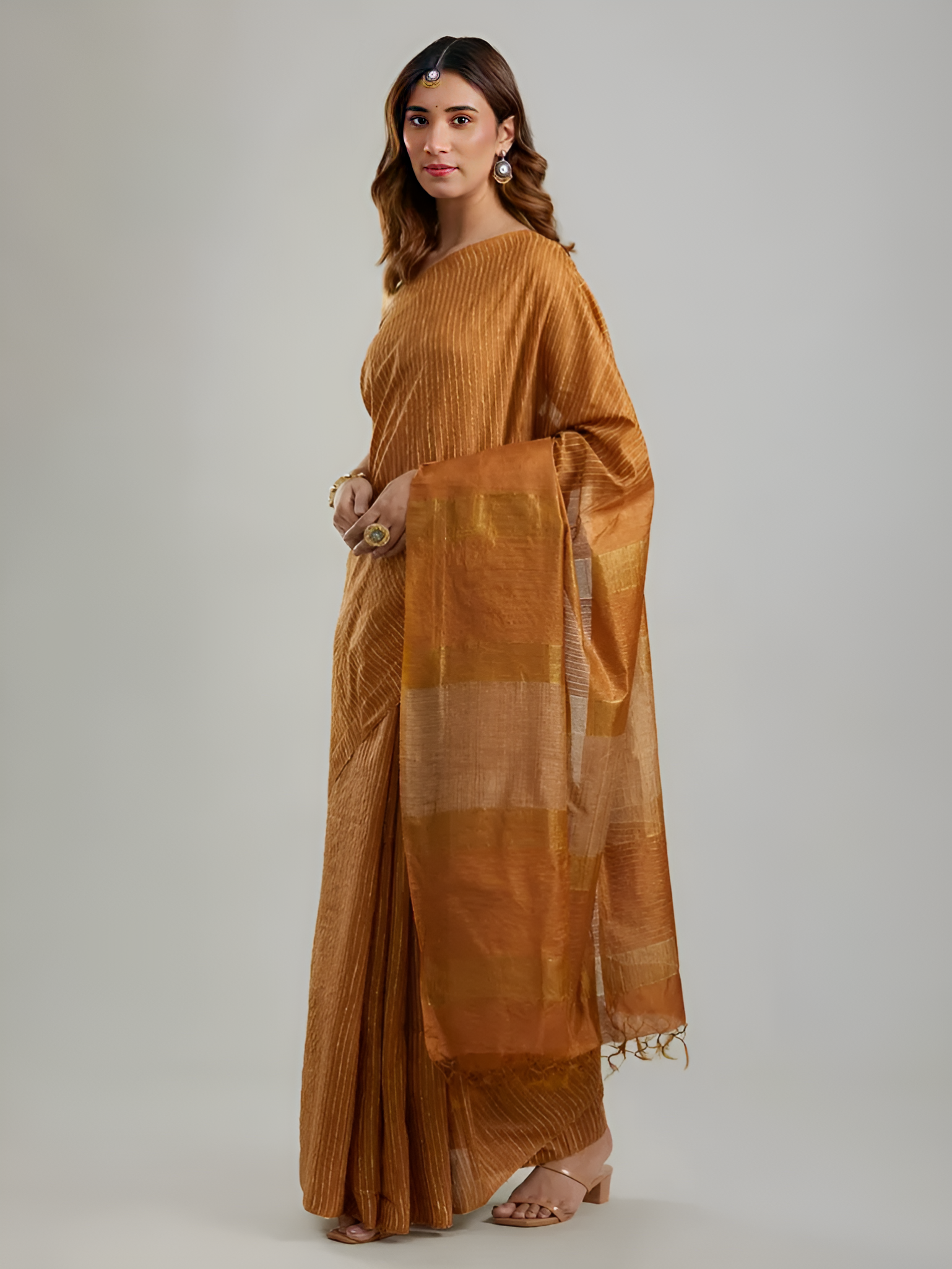KESAR: Handwoven Bhagalpuri silk zari saree
