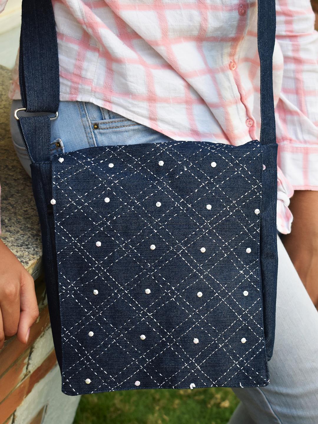 Kriti Sustainable Livelihoods Denim Sling Bag With Embroidery - SBE01