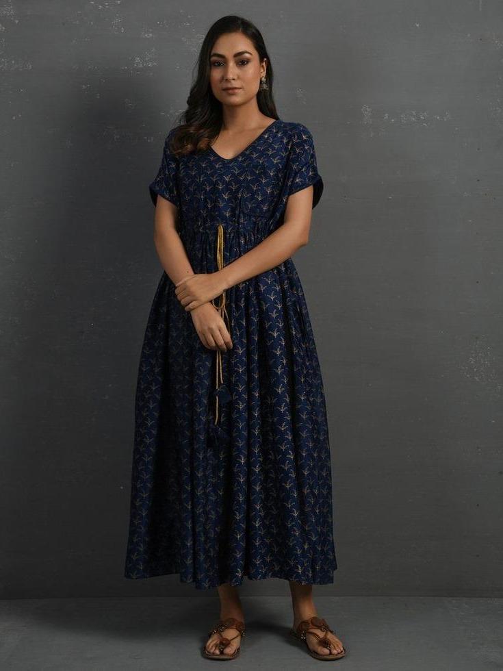 Sonal Kabra Indigo Block Printed Handwoven Chanderi Kurta