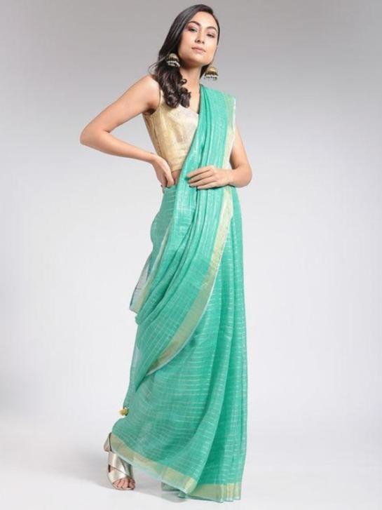 Sonal Kabra Bhagalpuri sea green linen saree