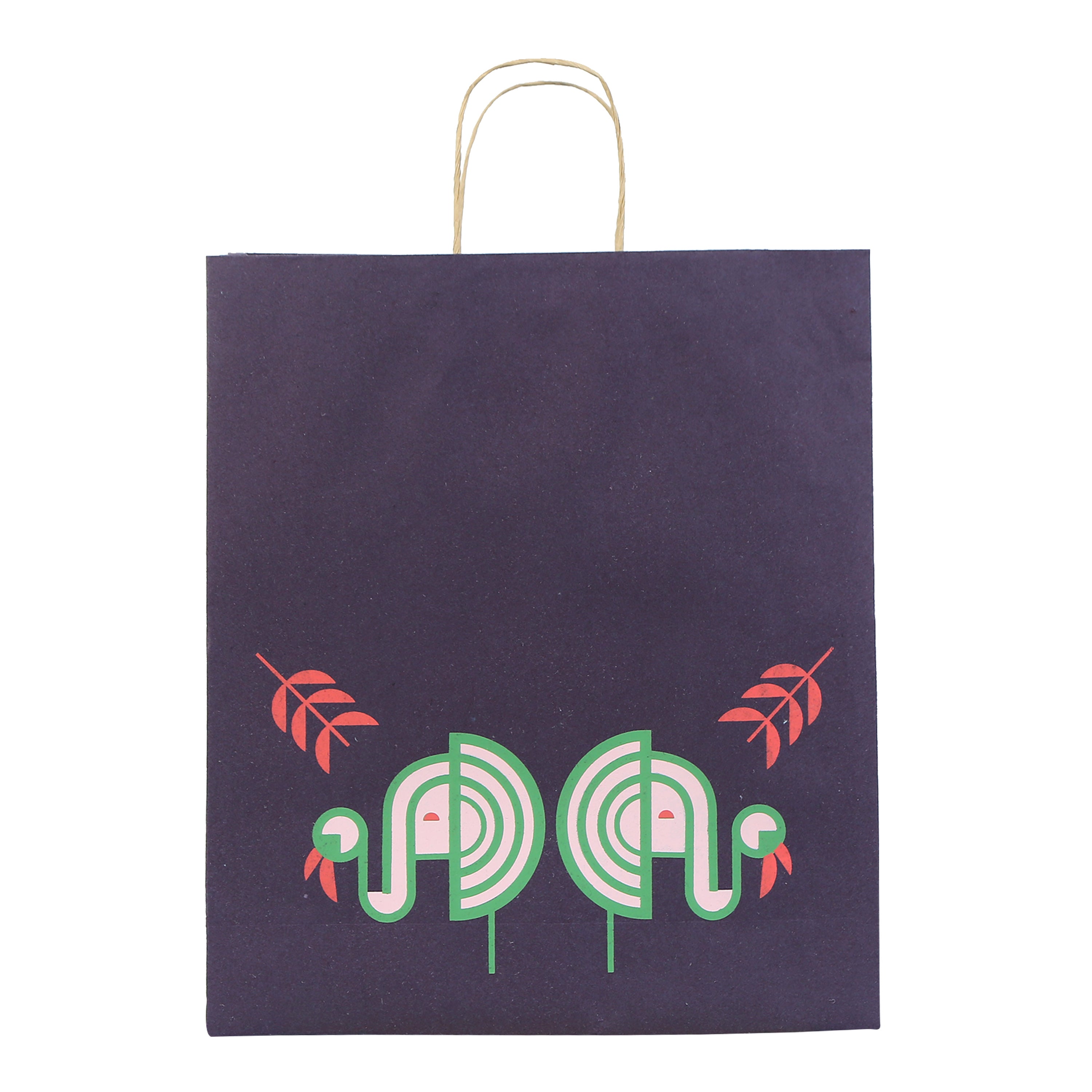 Artistic Elephant Screen Print: Intricate elephant design adds a unique, cultural touch to the gift bag.