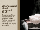 The grains of the rice are small in size and sticky. Further Indrayani rice is special because it is highly aromatic.