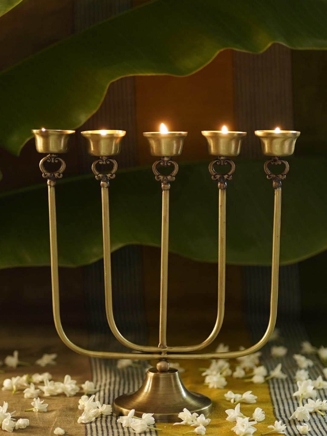 Light up your living space by opting for this Meenakshi Tealight stand by Courtyard. It is hand-crafted with precision using brass and imparts a smooth finished look that is sure to catch your fancy.