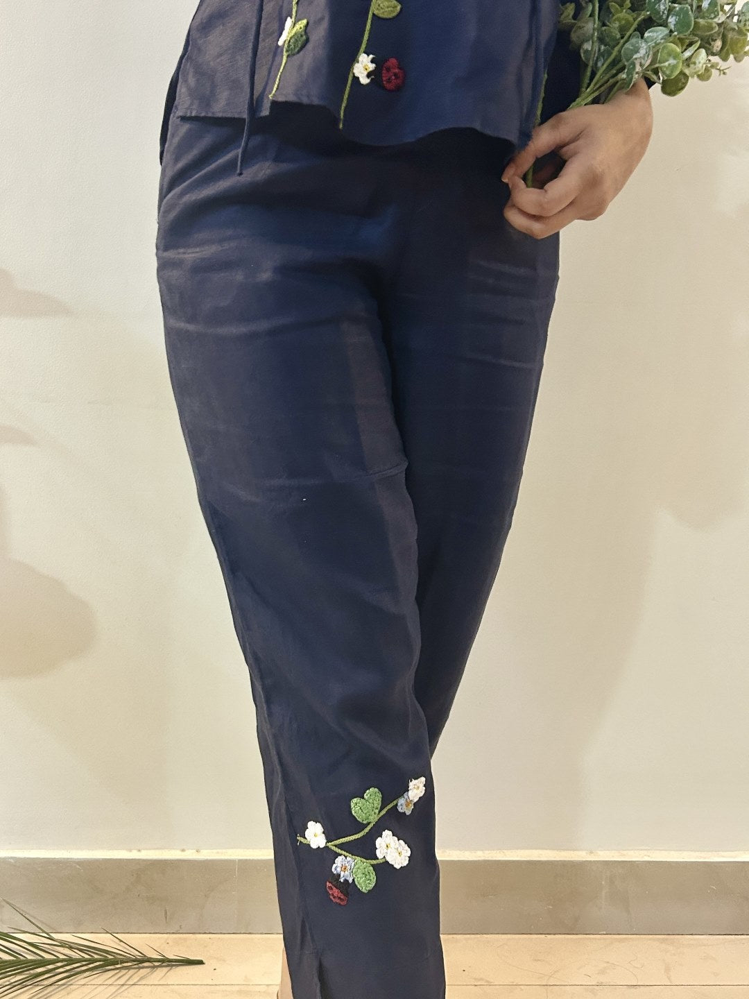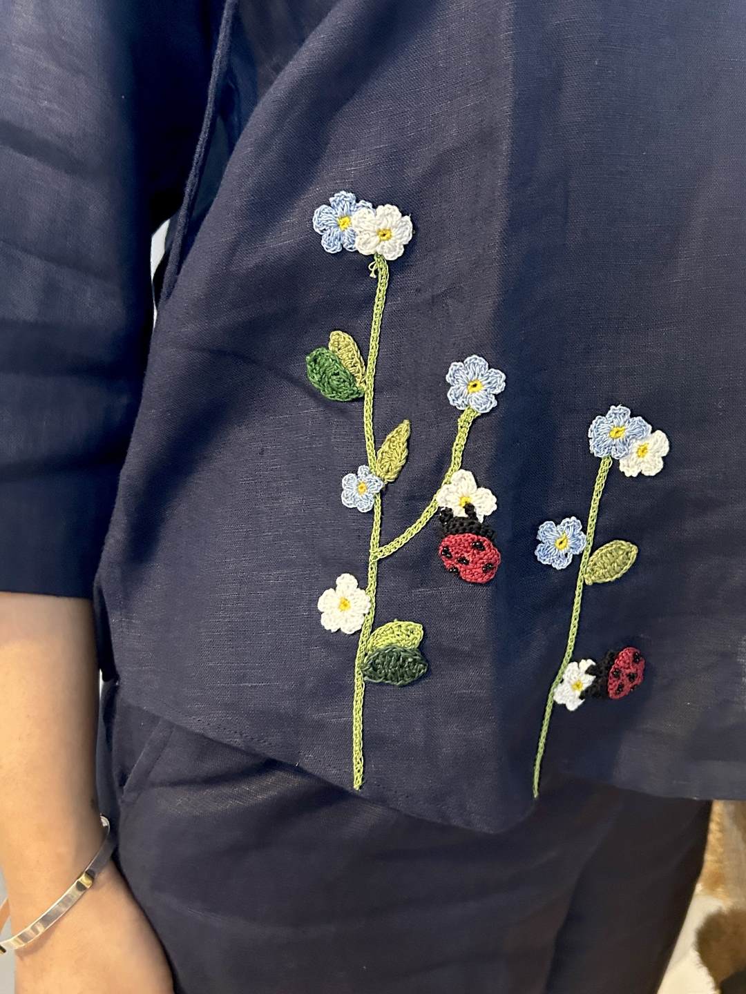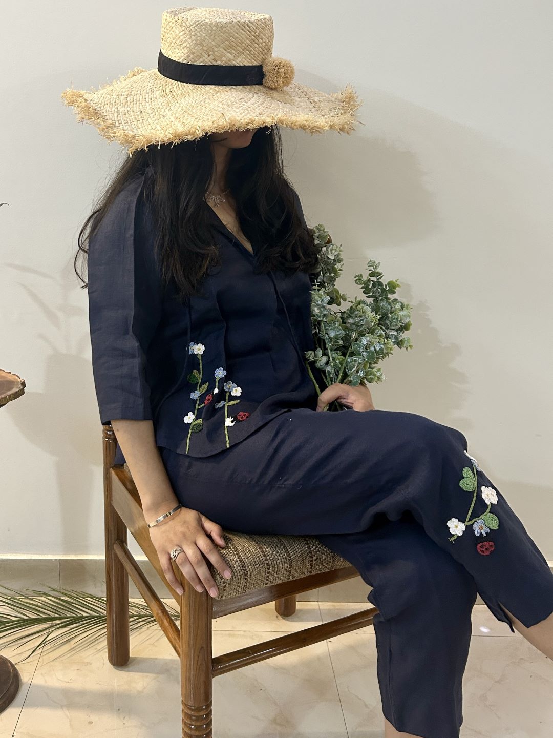 Embrace timeless elegance with the Indigo Serene Stitch Linen Set, featuring both the Top and Trousers for a stylish and coordinated outfit.