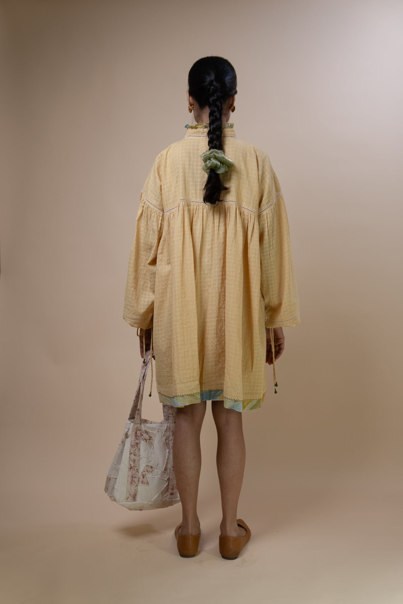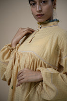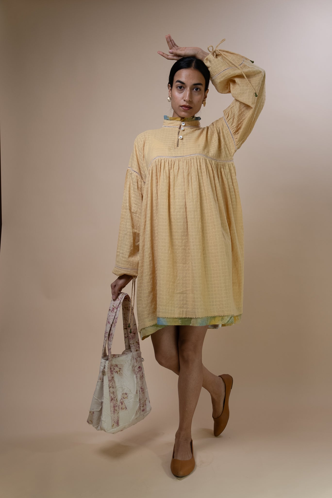 Crafted from 100% cotton fibers and natural materials, the Meadows Gathered Short Dress is naturally dyed using Myrobalan and Madder.