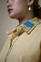 The design features a classic shirt collar, accentuated with hand-painted Mulmul piping along the collar, placket, and cuffs. Thoughtful details like small front slits and patched Mulmul cuffs, highlighted with blanket stitches, introduce a playful splash of colour. Kantha embroidery on the cuffs adds an artisanal touch, elevating the shirt while maintaining a comfortable fit.