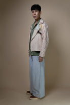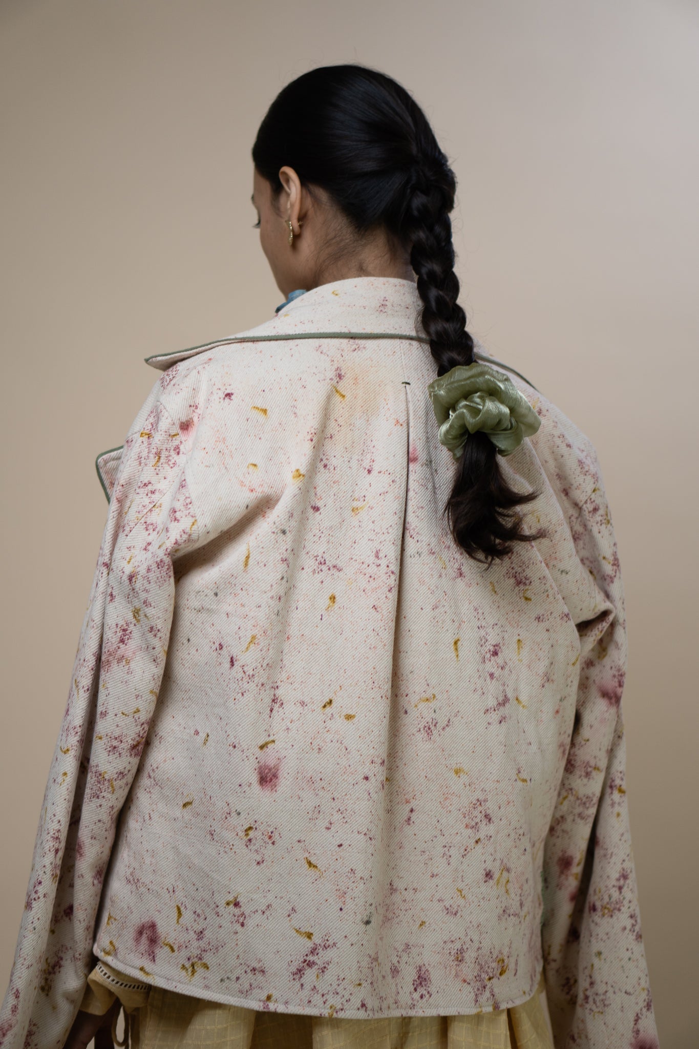 This Meadows Unisex Cropped Jacket is crafted in our signature Kora Denim, thoughtfully reimagined with surface design. Made from 100% cotton fibers, this jacket is eco-printed using temple flower waste such as roses, hibiscus, and marigolds that have been collected and repurposed.
