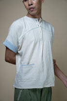 Crafted from 100% cotton fibers and natural materials, the Meadows Unisex Yoke Detail Shirt features a effortless combination of azo-free dyed blue handwoven cotton and undyed Kala cotton.