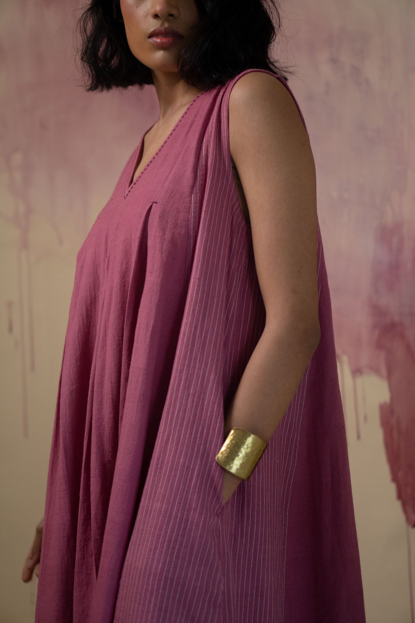 The easy and classic silhouette of this dress showcases a generous flare and inverted pleats, embodying simplicity that makes it a perfect and versatile addition to your wardrobe. Its functional design includes pockets, adding practicality to its timeless charm.