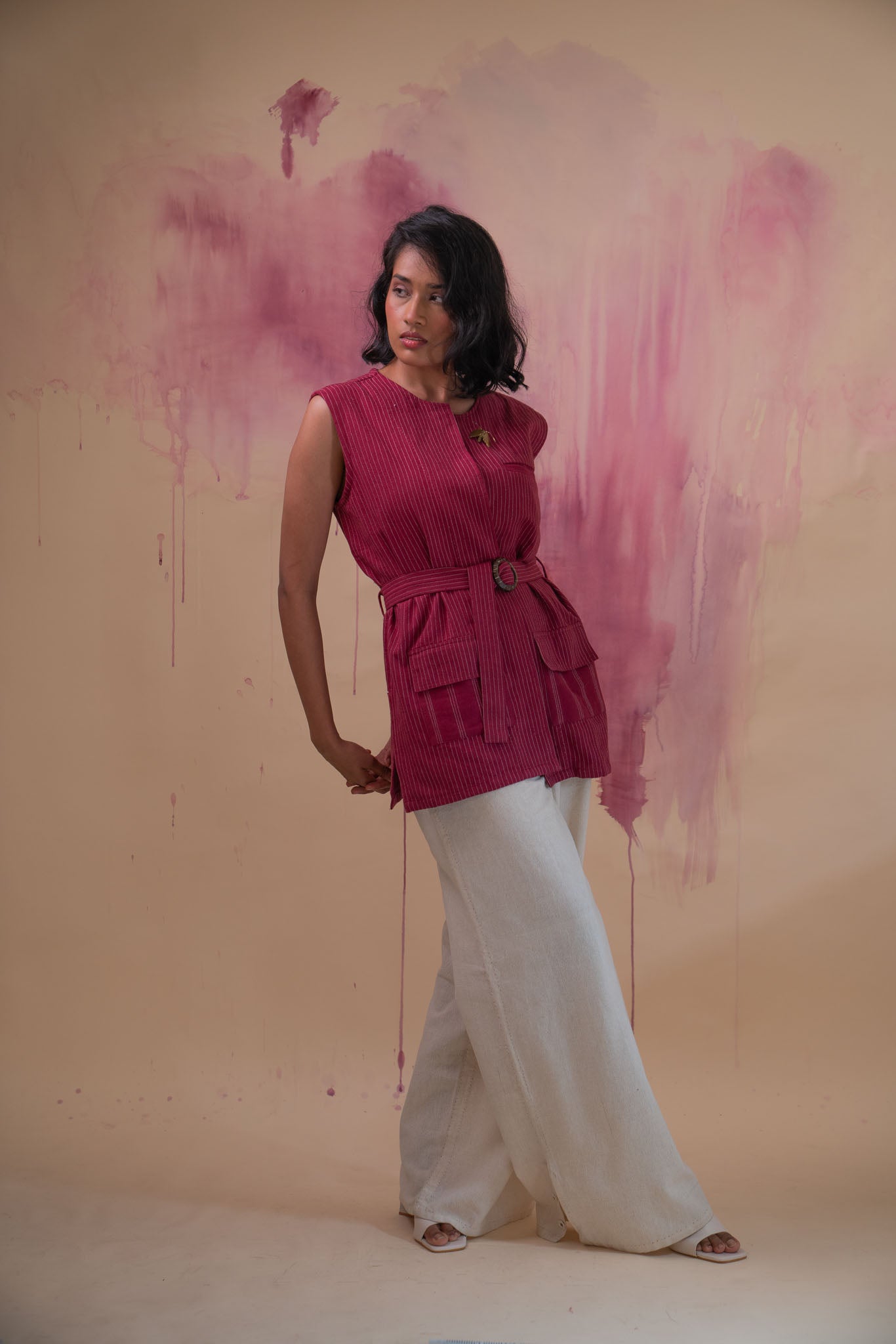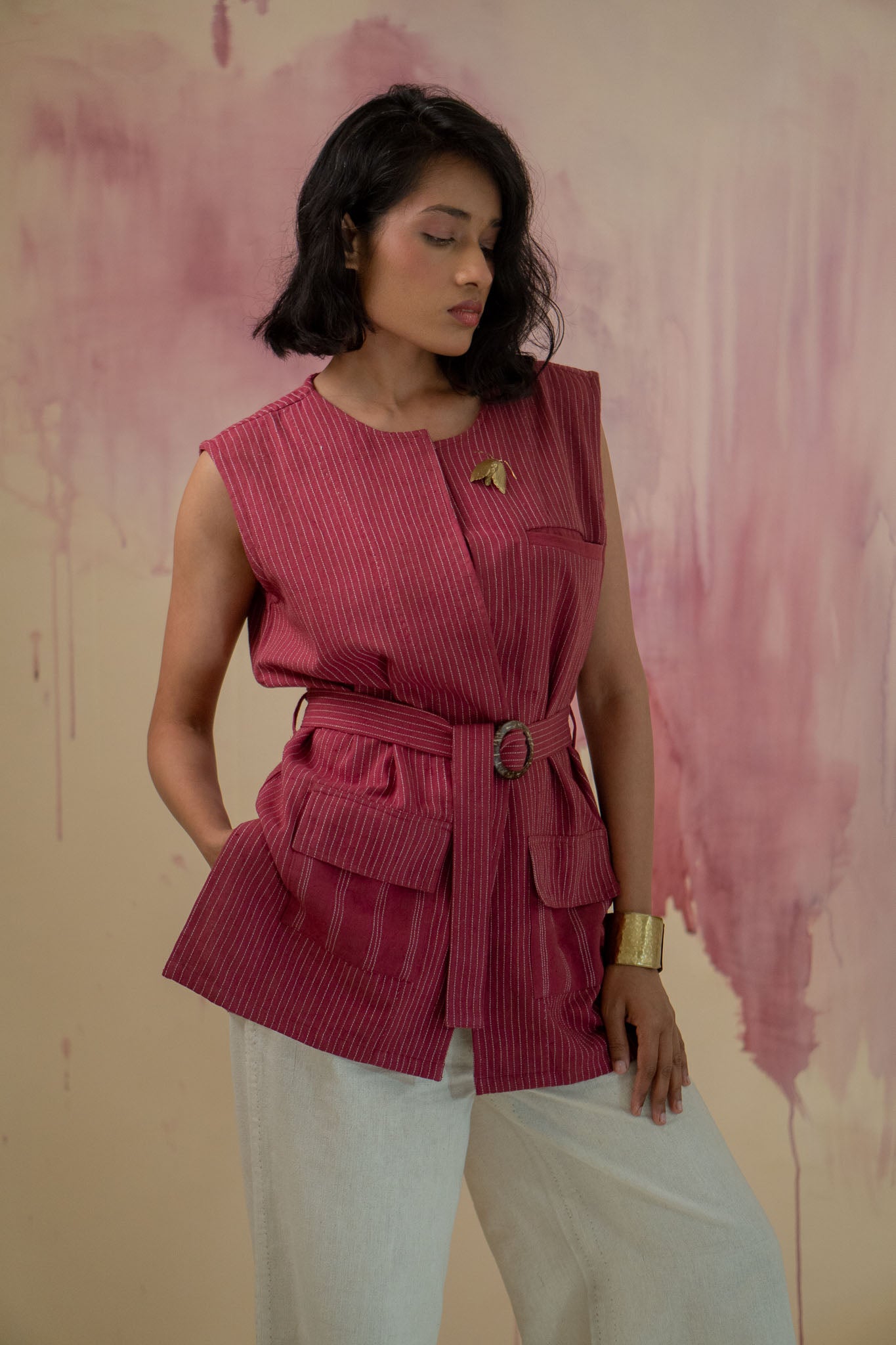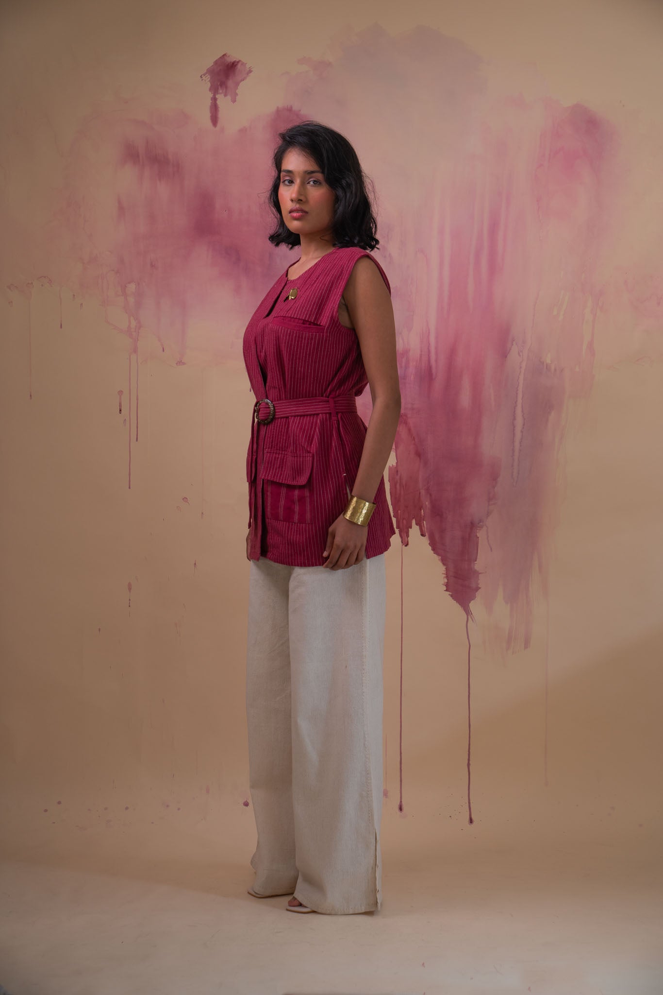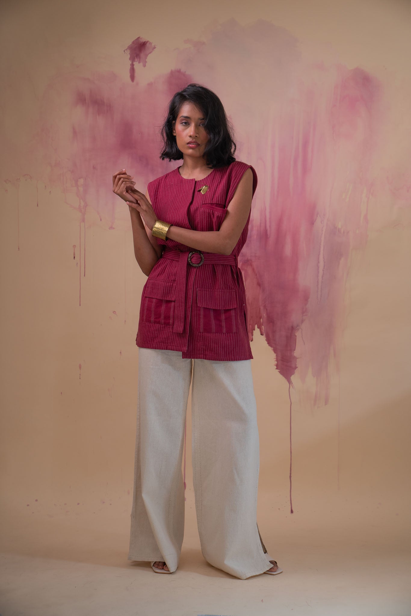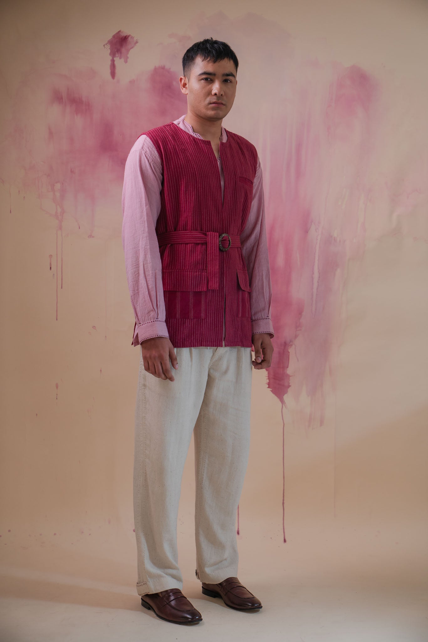 Crafted from 100% cotton fibers and natural materials. This Kala Cotton Vest comes in a calm and soothing colour that we call Fire Brick naturally dyed from a host of ingredients ranging from madder root to onion peel.