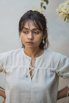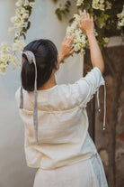 Crafted in 100% cotton fibres and natural materials. This sheer self-checked blouse is undyed and unbleached.