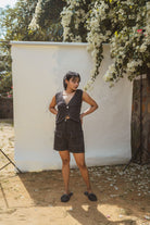 Crafted in 100% cotton fibres and natural materials. This black coloured Kala cotton V-neck vest has been naturally dyed using Myrobalan and Iron.