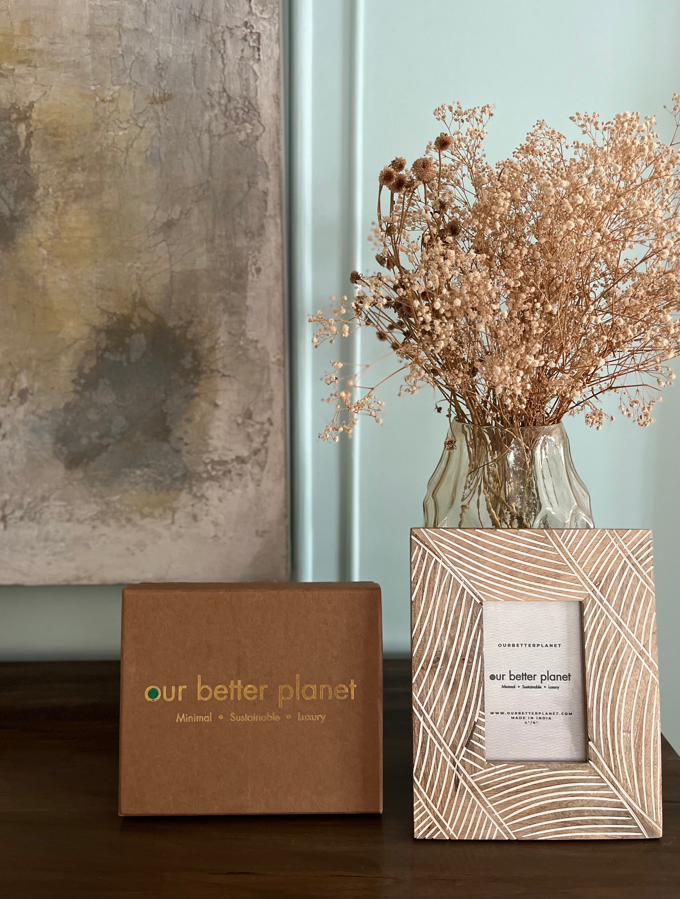 - Intricately Engraved Wooden Frame – Showcases a 4"/6" picture, adding a personal touch to your décor.