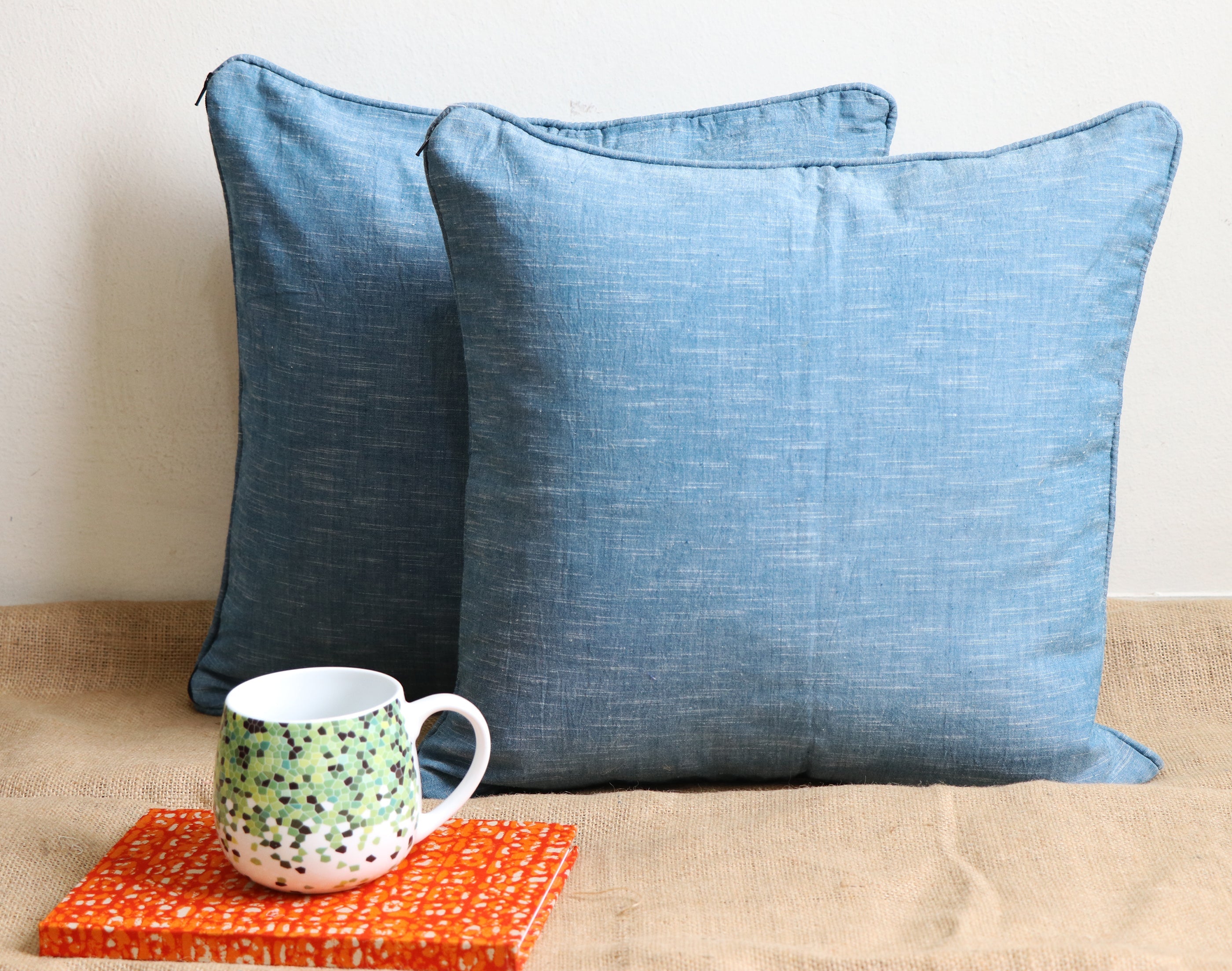 Blue Plain Dual Sided Cushion Covers (Set Of 2)