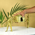 Unique Design: A magnificent representation of a traditional wedding palanquin, crafted using the ancient Dhokra art form, symbolizing the cultural richness of Indian weddings.