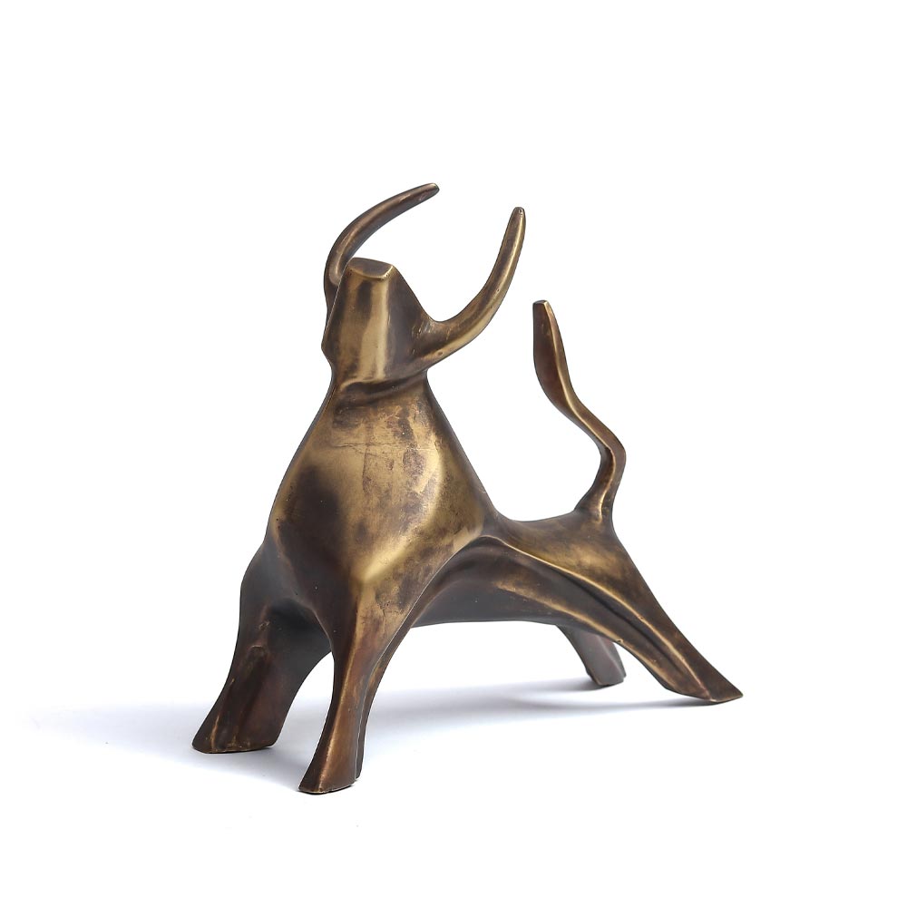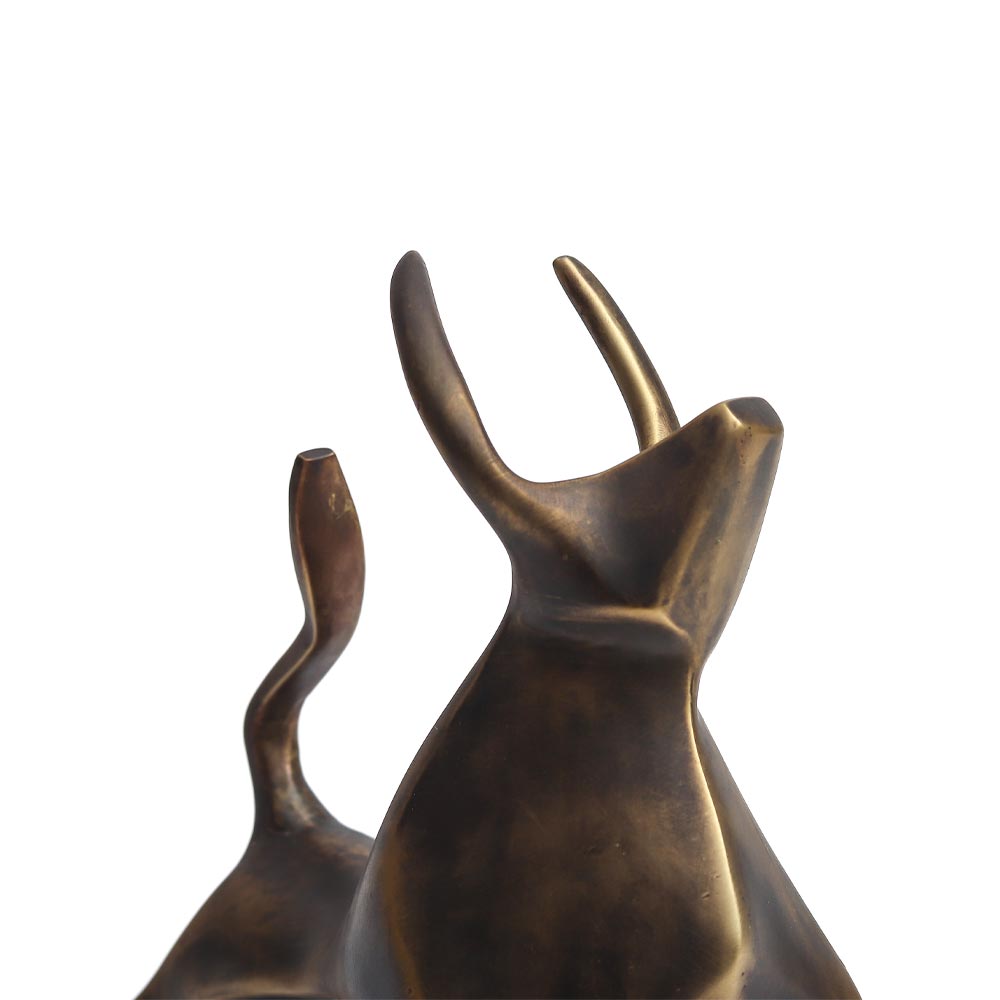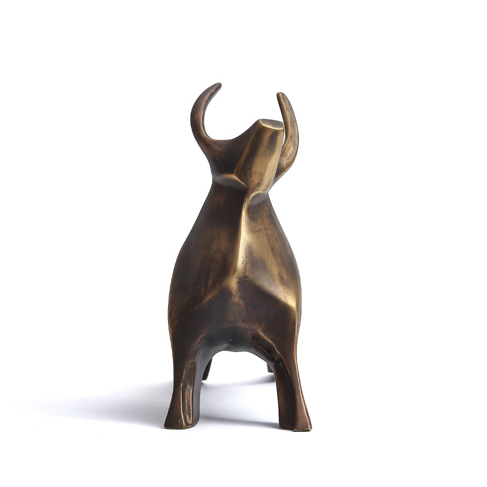 Meticulously crafted from solid brass through our time-honoured sand casting process, this piece boasts a brushed finish that elevates its aesthetic appeal.More than just a decorative item, this bull sculpture transcends the ordinary to become a standalone masterpiece, capable of transforming any space into a haven of luxury decor. Its commanding presence and artistic detailing make it a compelling focal point, adding a touch of sophistication to your surroundings. Elevate your living spaces with this symbol of strength and grace, meticulously crafted to bring a sense of luxury and refinement to your home or office.