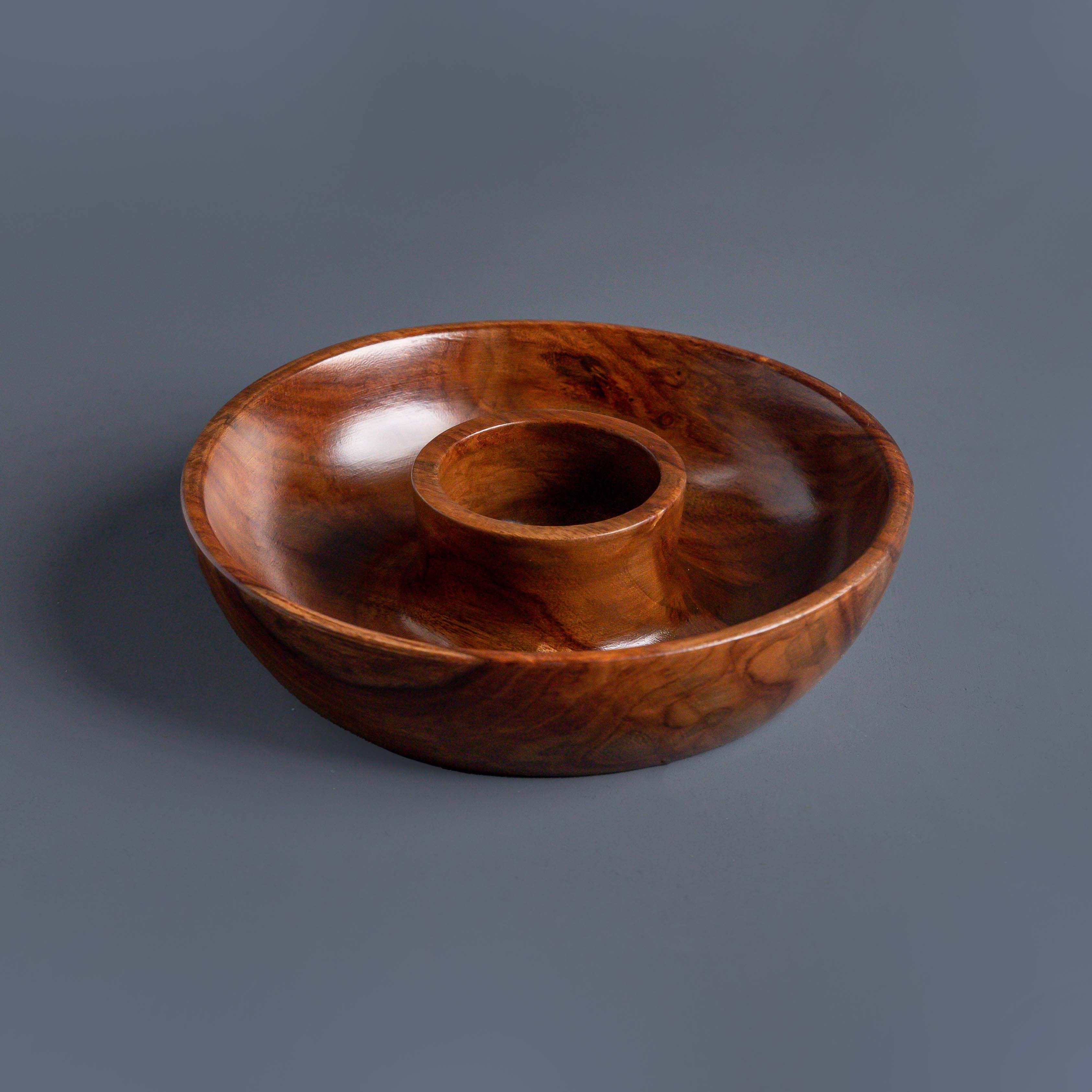 Lend a touch of grace to your next get-together with this handcrafted chip and dip bowl. Its made in sheesham wood and done in food safe finish, this product is made to last you very many parties.