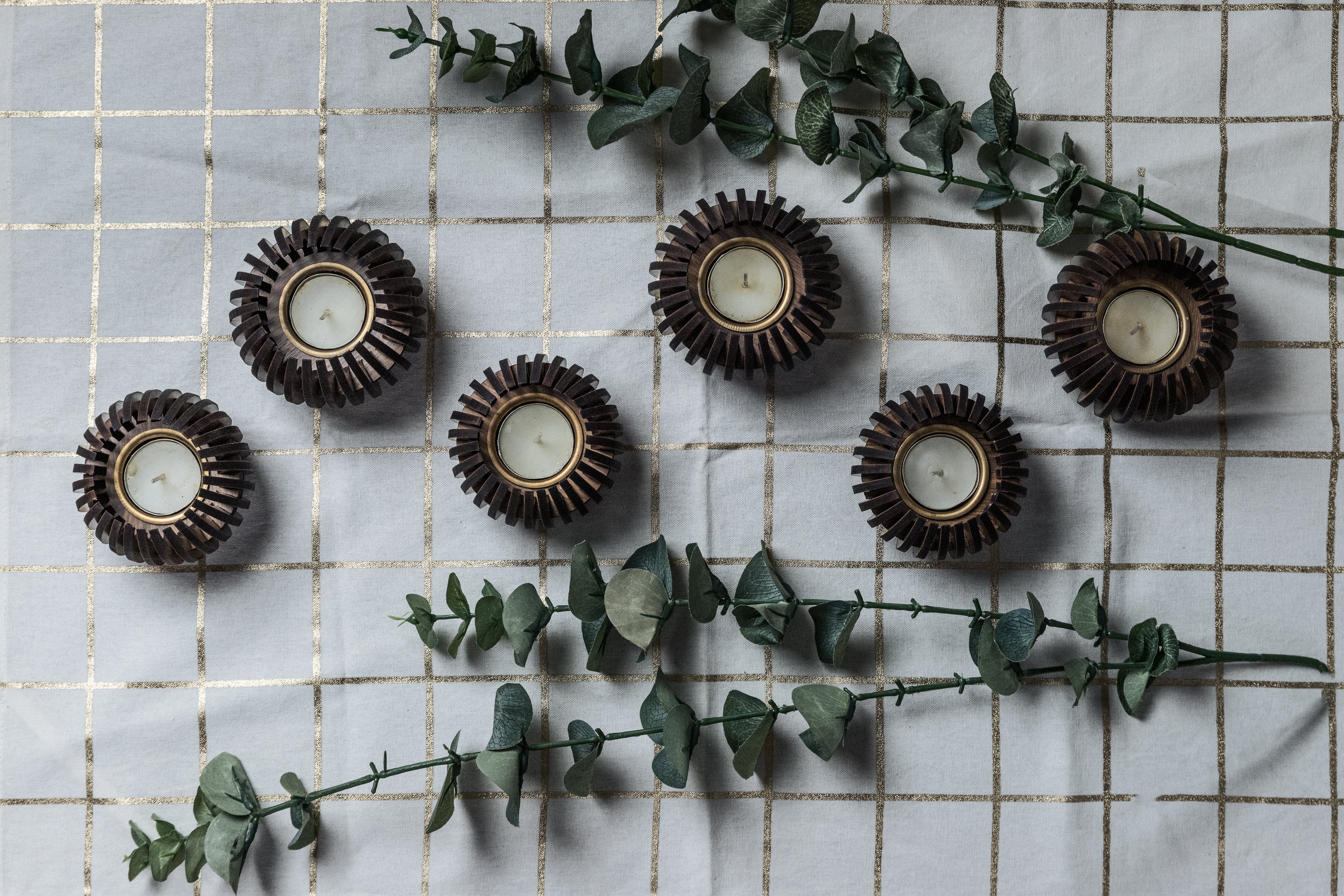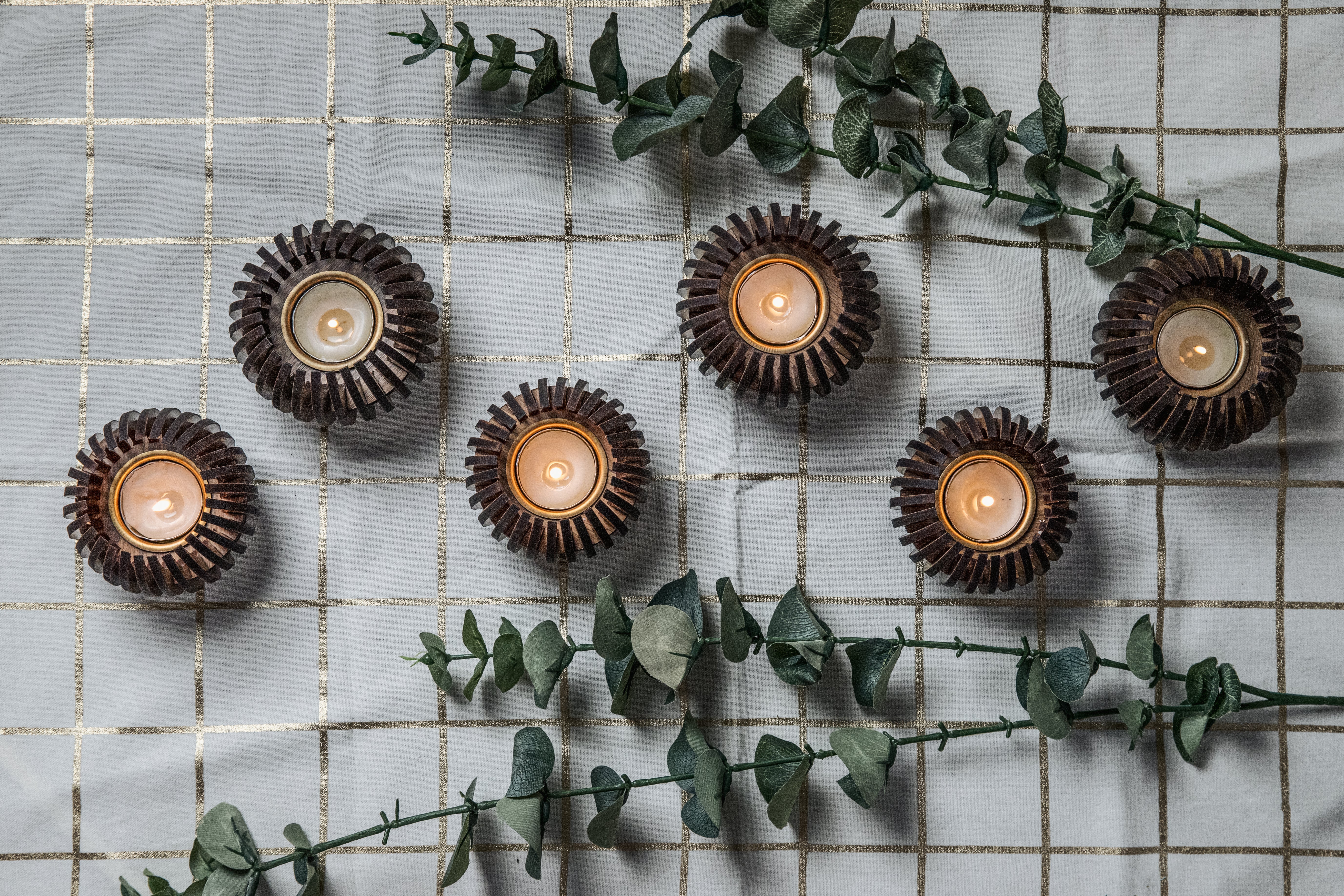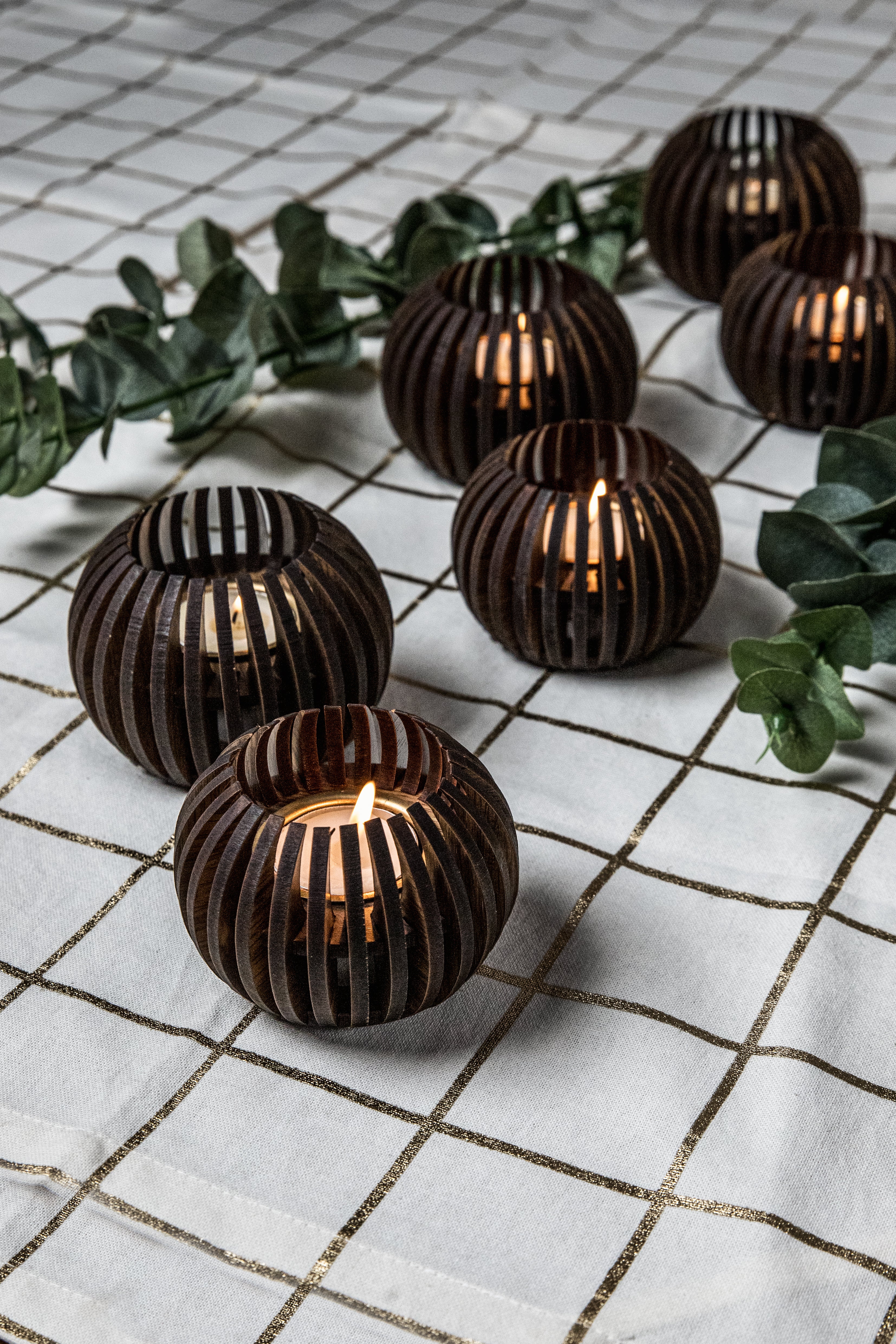 Ciana T light holders are two complementing sizes t light holder and comes as a set of two , four and six . It has gold metal plates where you can put your T lights and see the magic of these lights come alive in your space.