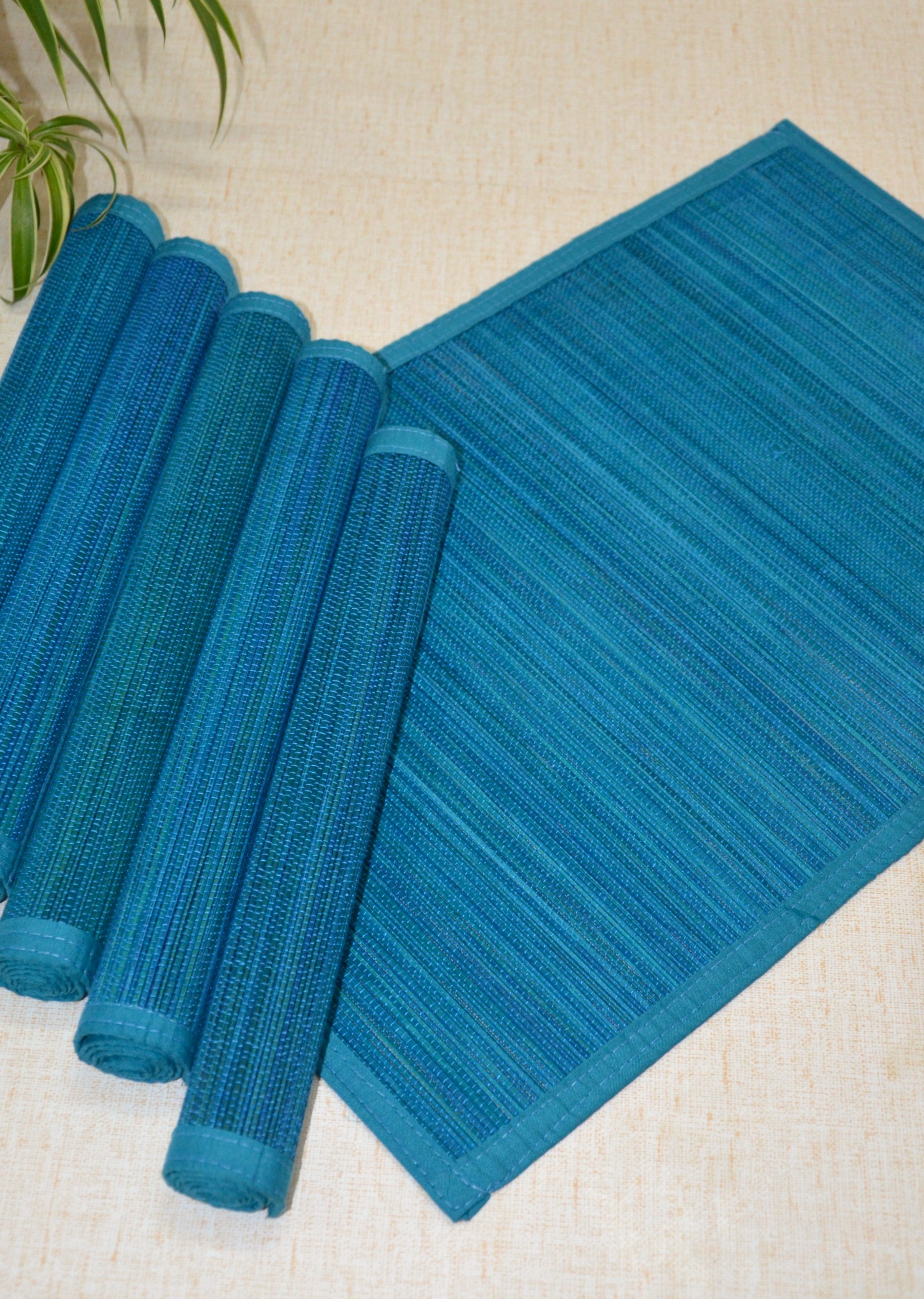 Dharini Bamboo Placemats Plain Blue (Set of 6)