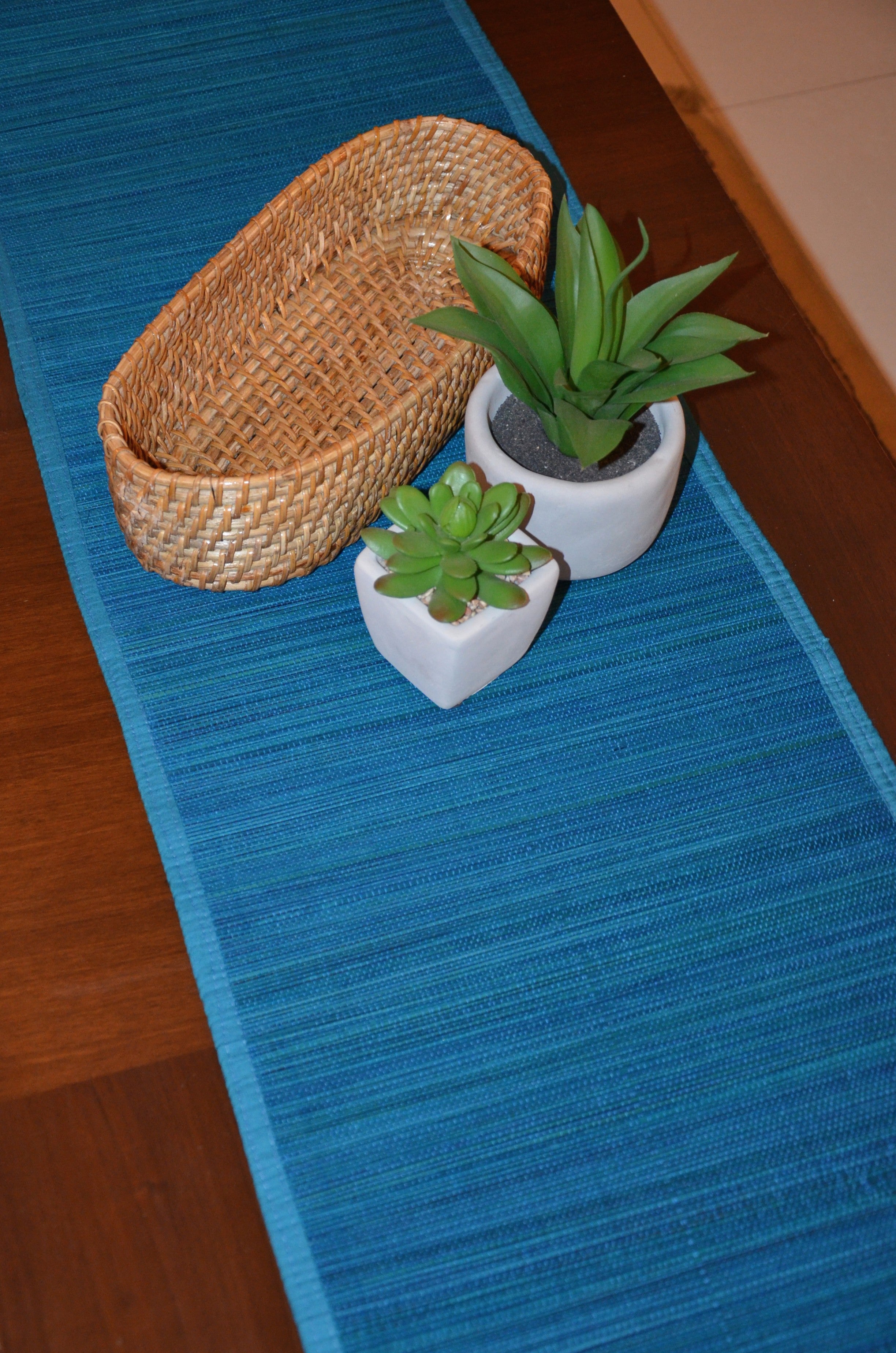 Table runner constructed from Bamboo sticks and interwoven with cotton thread. Earthy and Eco-friendly, these are a perfect addition to your home and complement most themes.