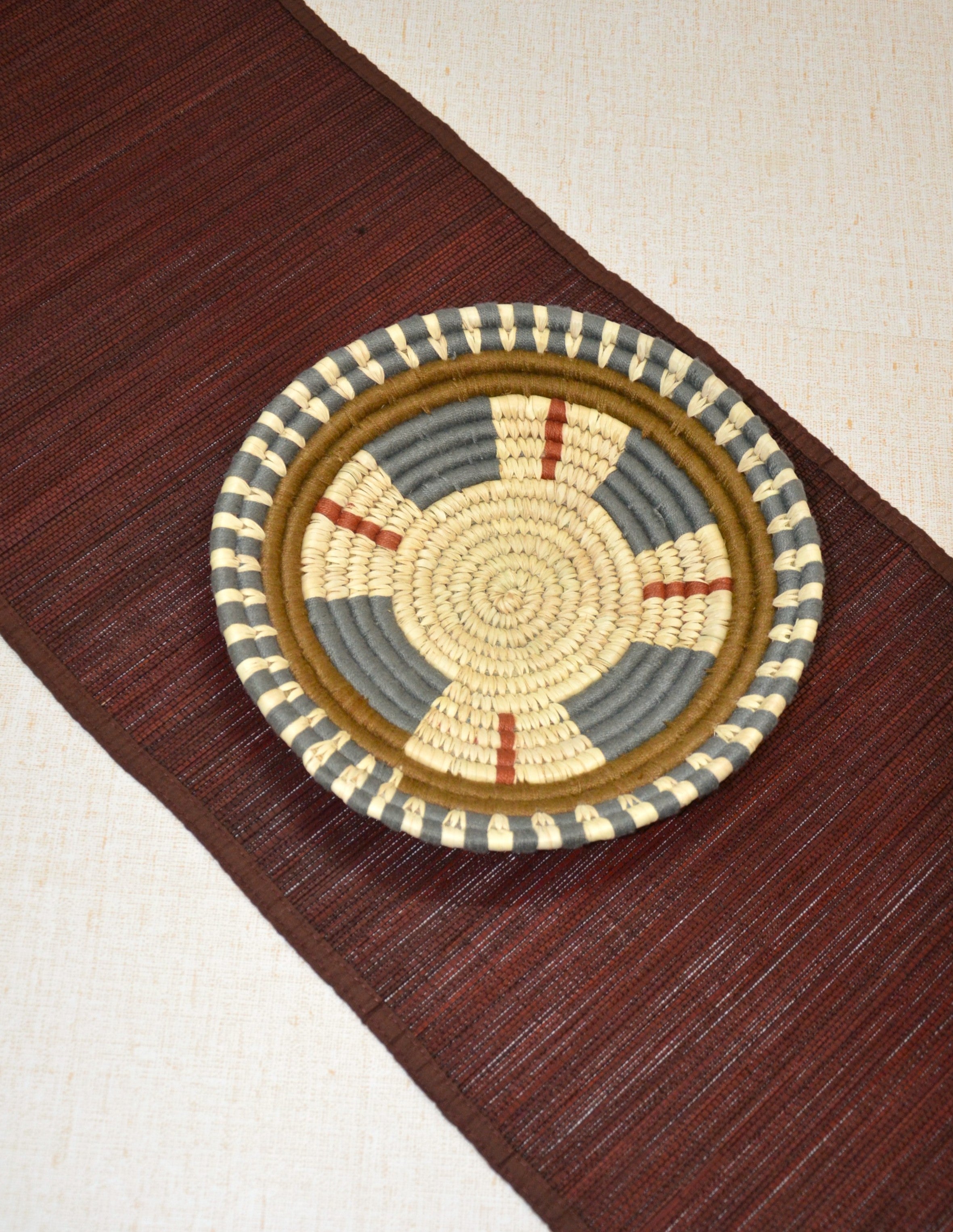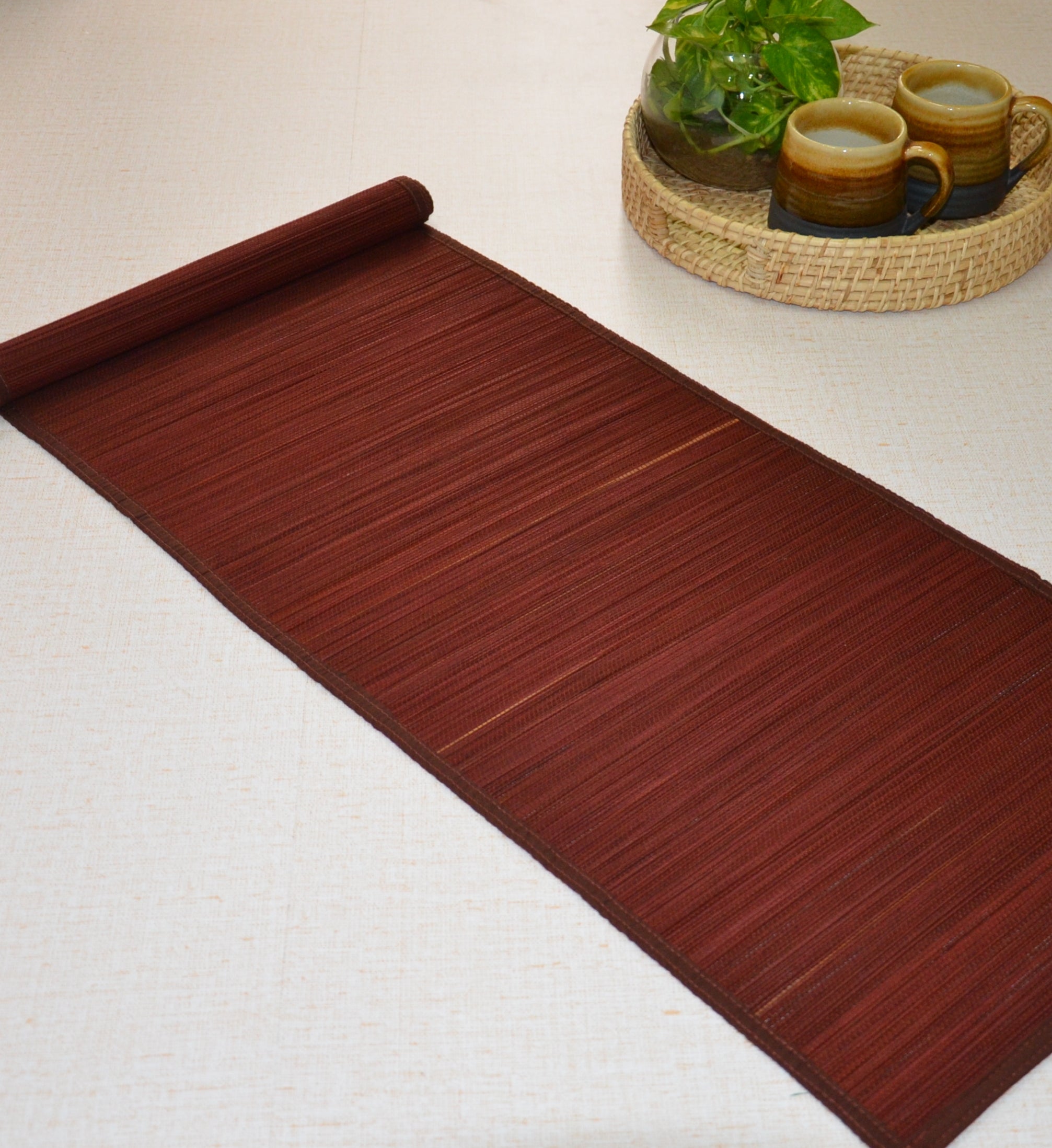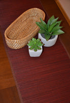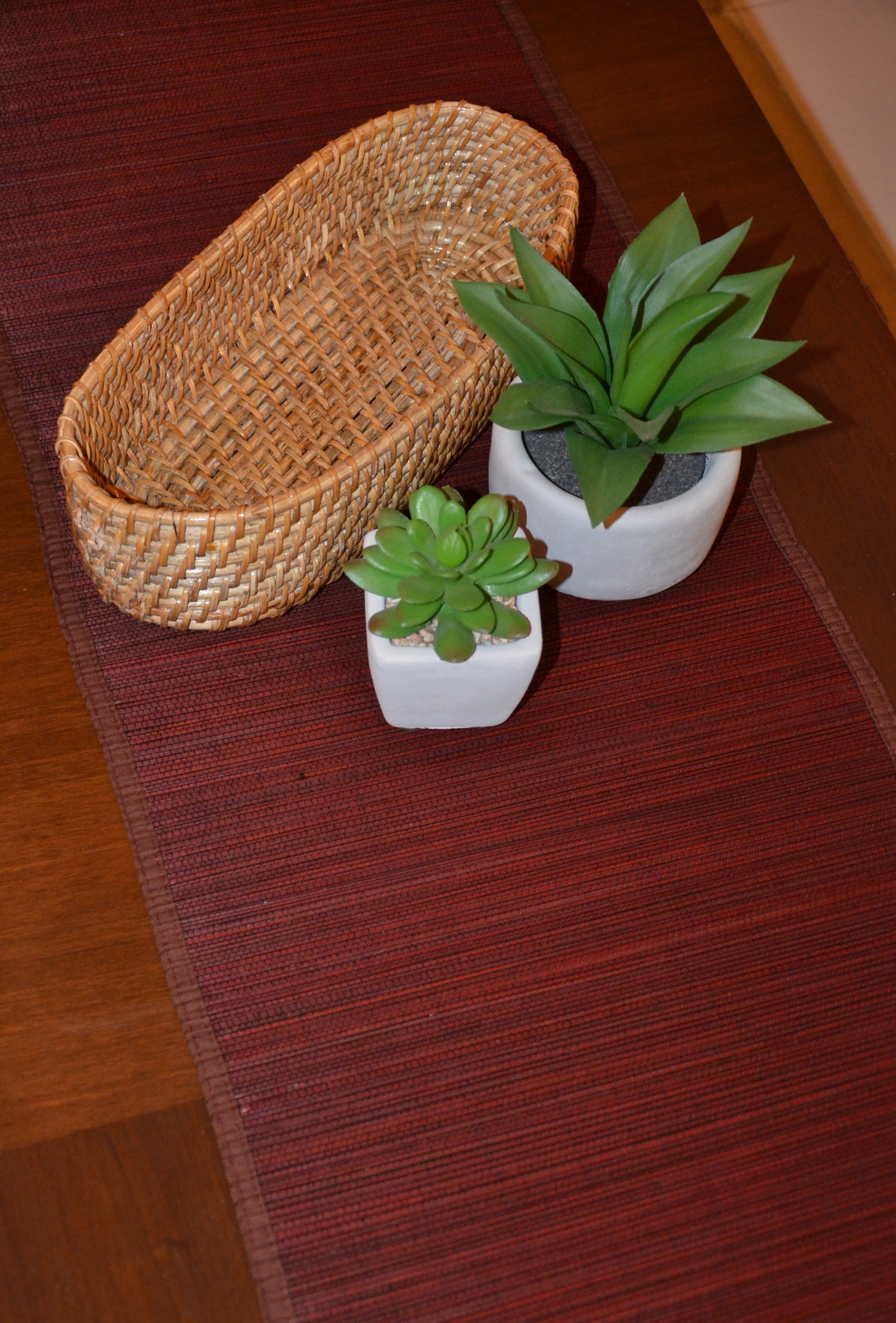 Table runner constructed from Bamboo sticks and interwoven with cotton thread. Earthy and Eco-friendly, these are a perfect addition to your home and complement most themes.