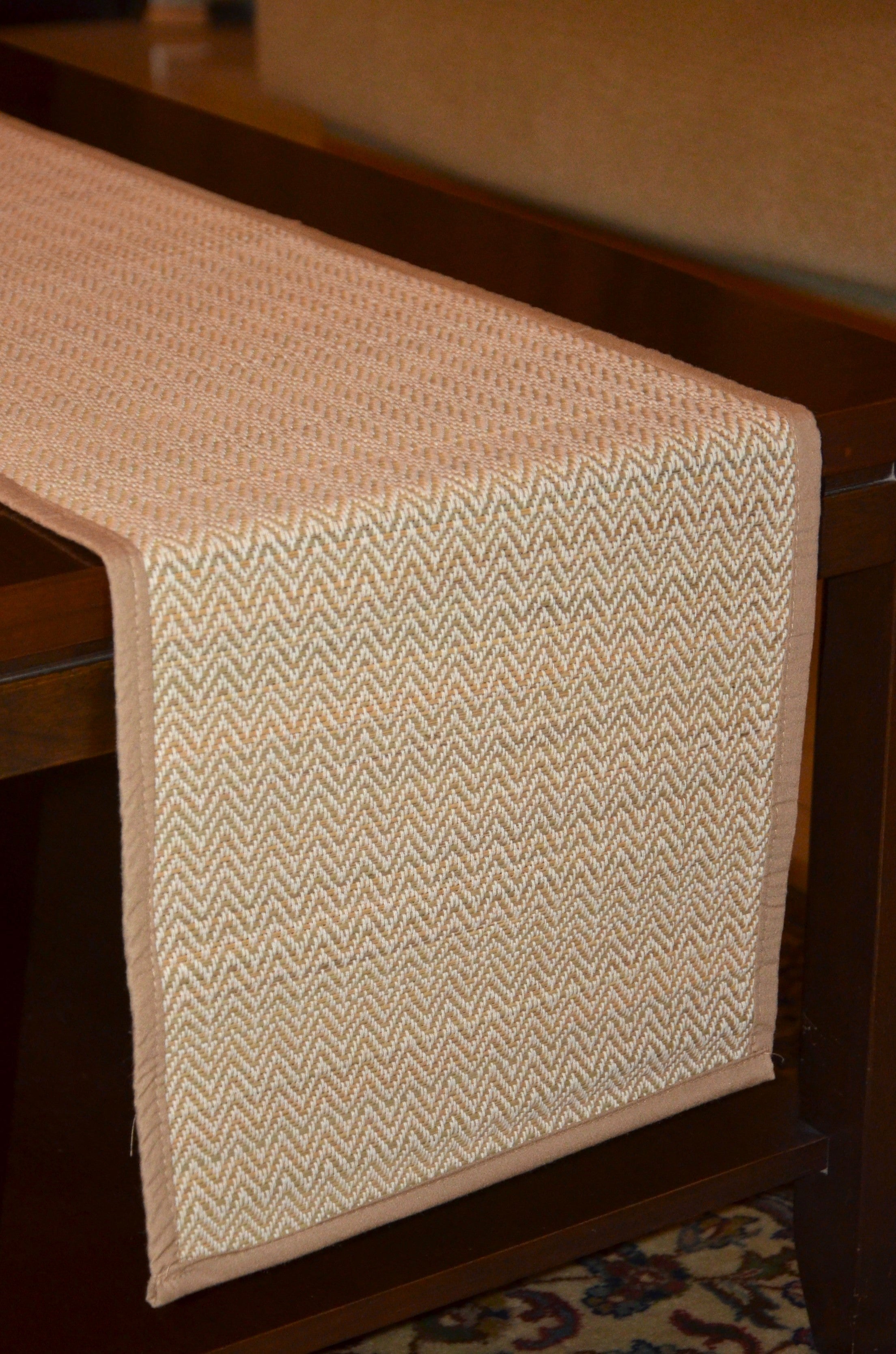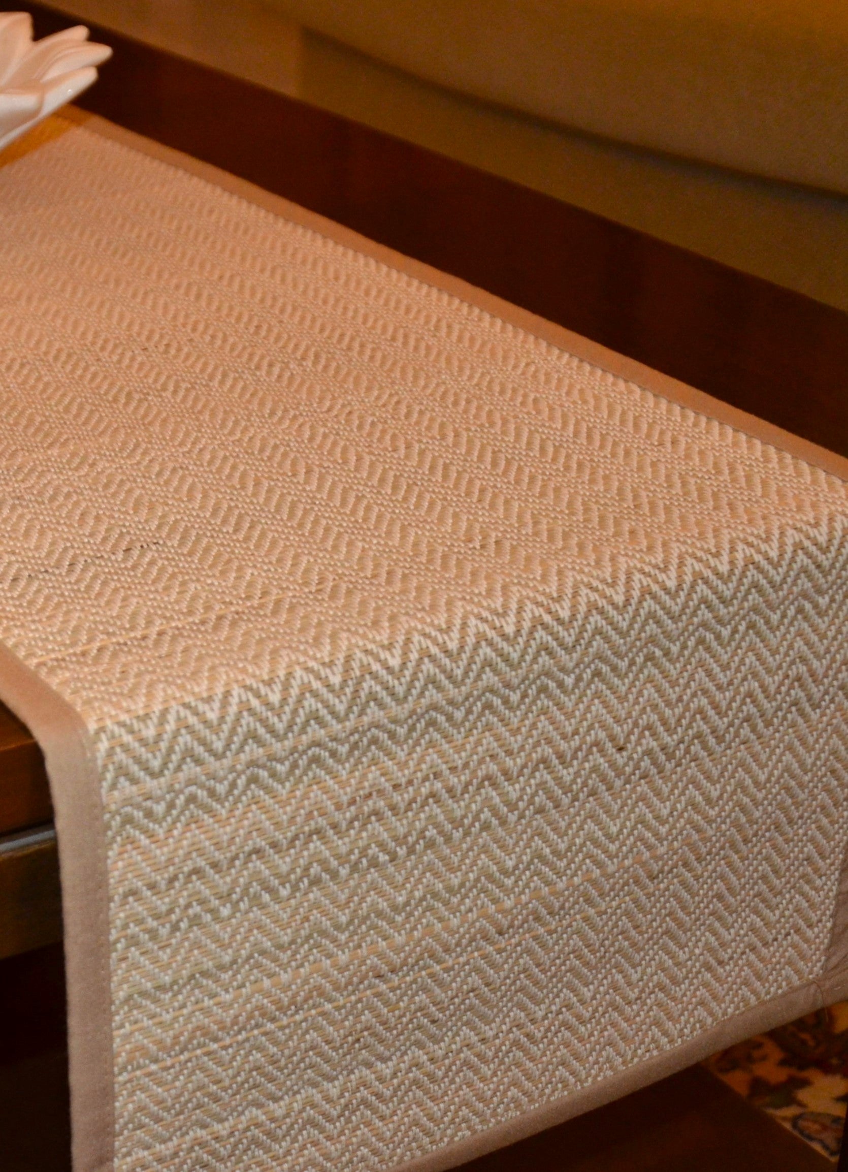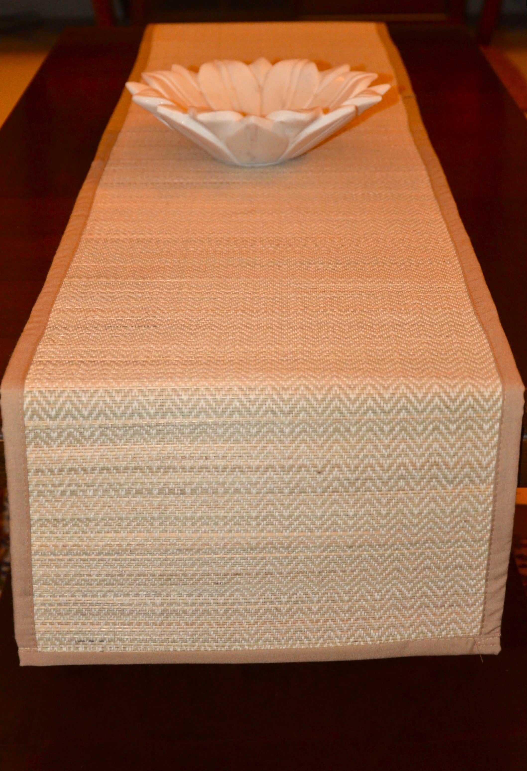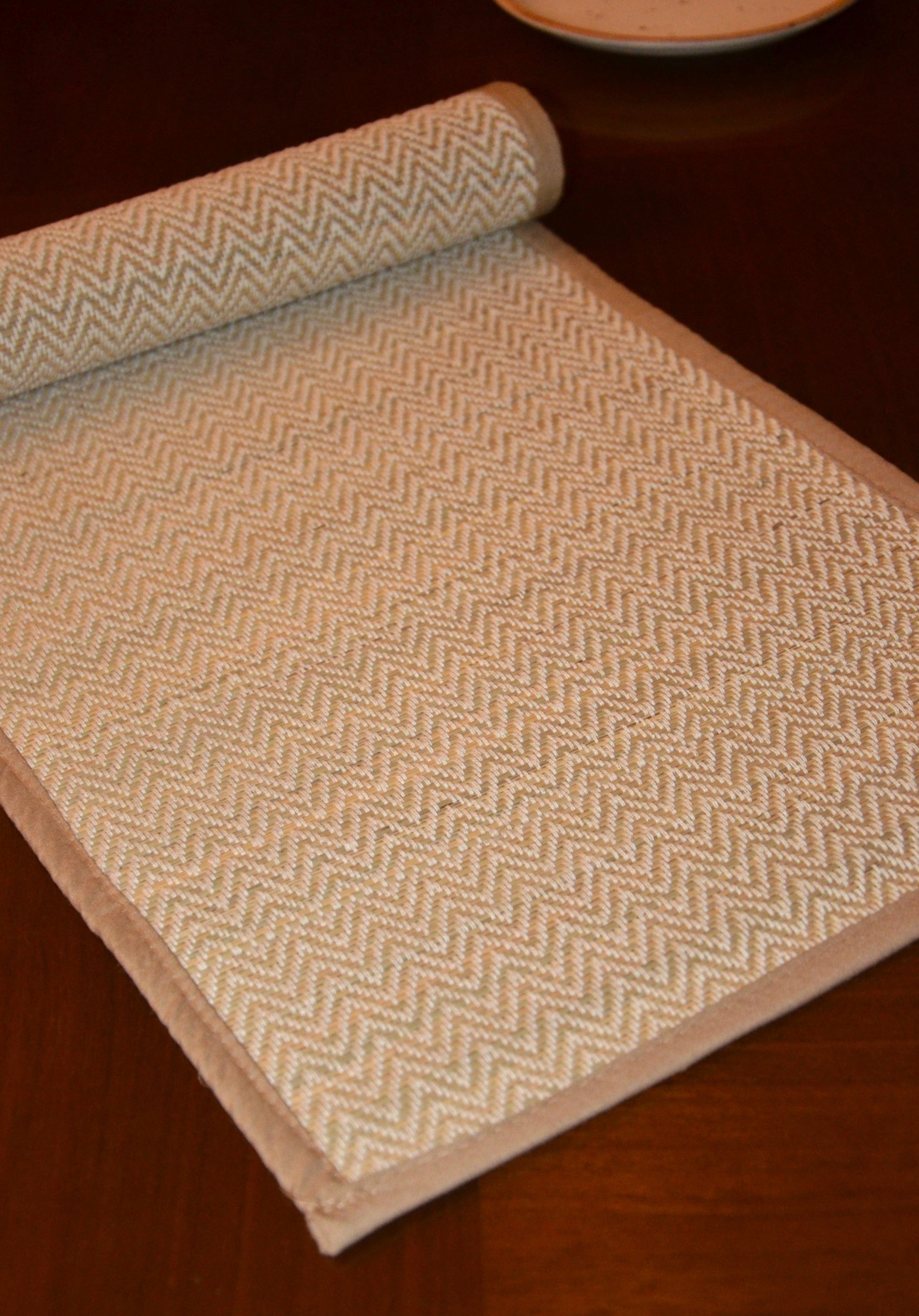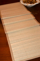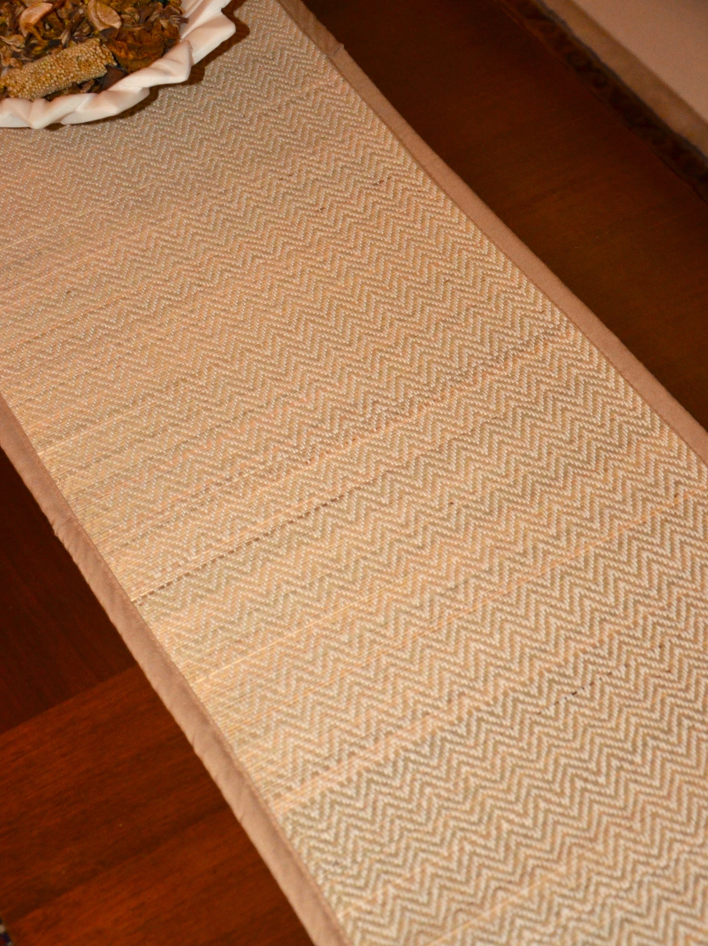 Eco-friendly and natural table runner handcrafted of Madurkathi reed and beautifully interwoven with thread in a chevron pattern.