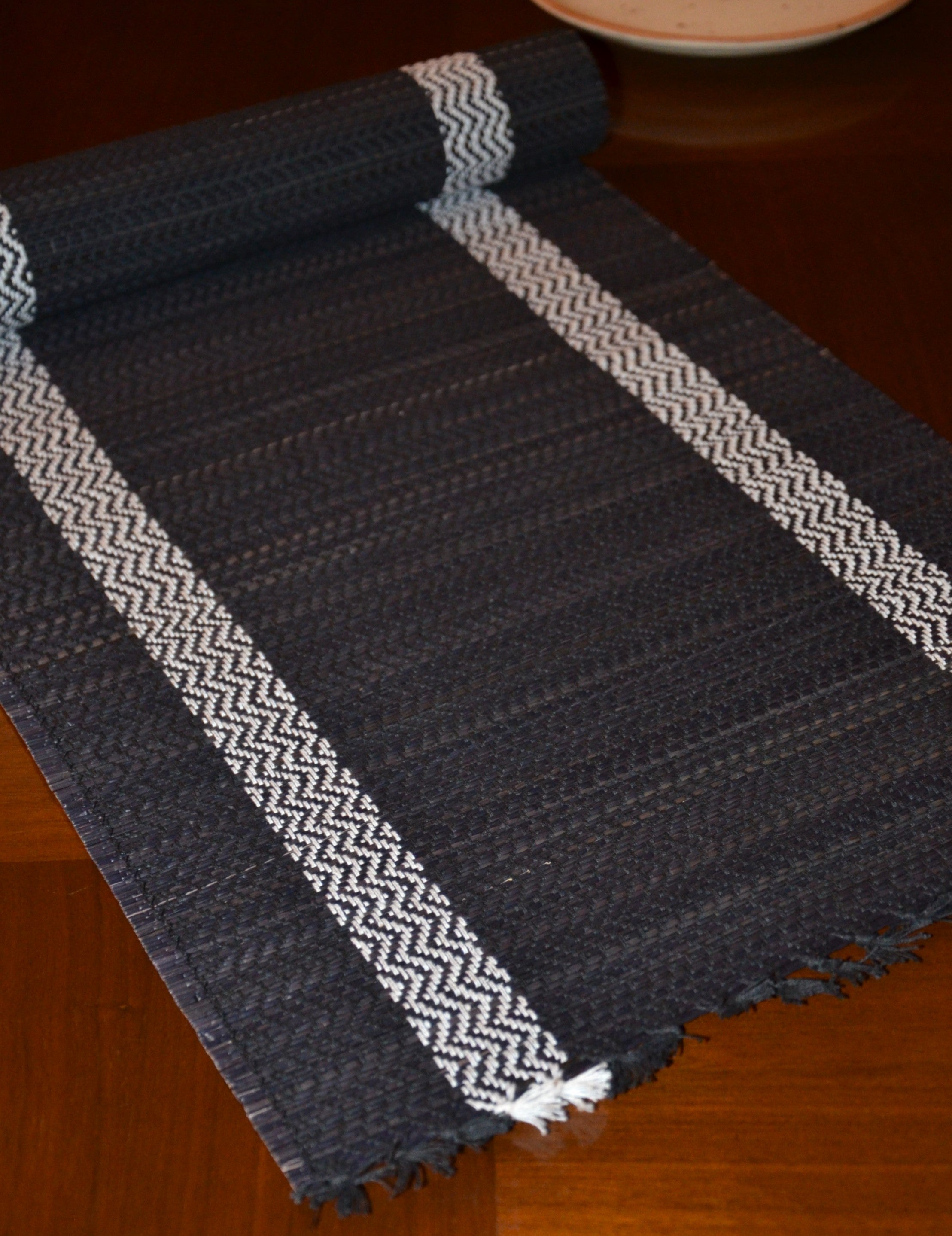 Eco-friendly table runner made from Madurkathi reed and beautifully interwoven with coloured threads.
