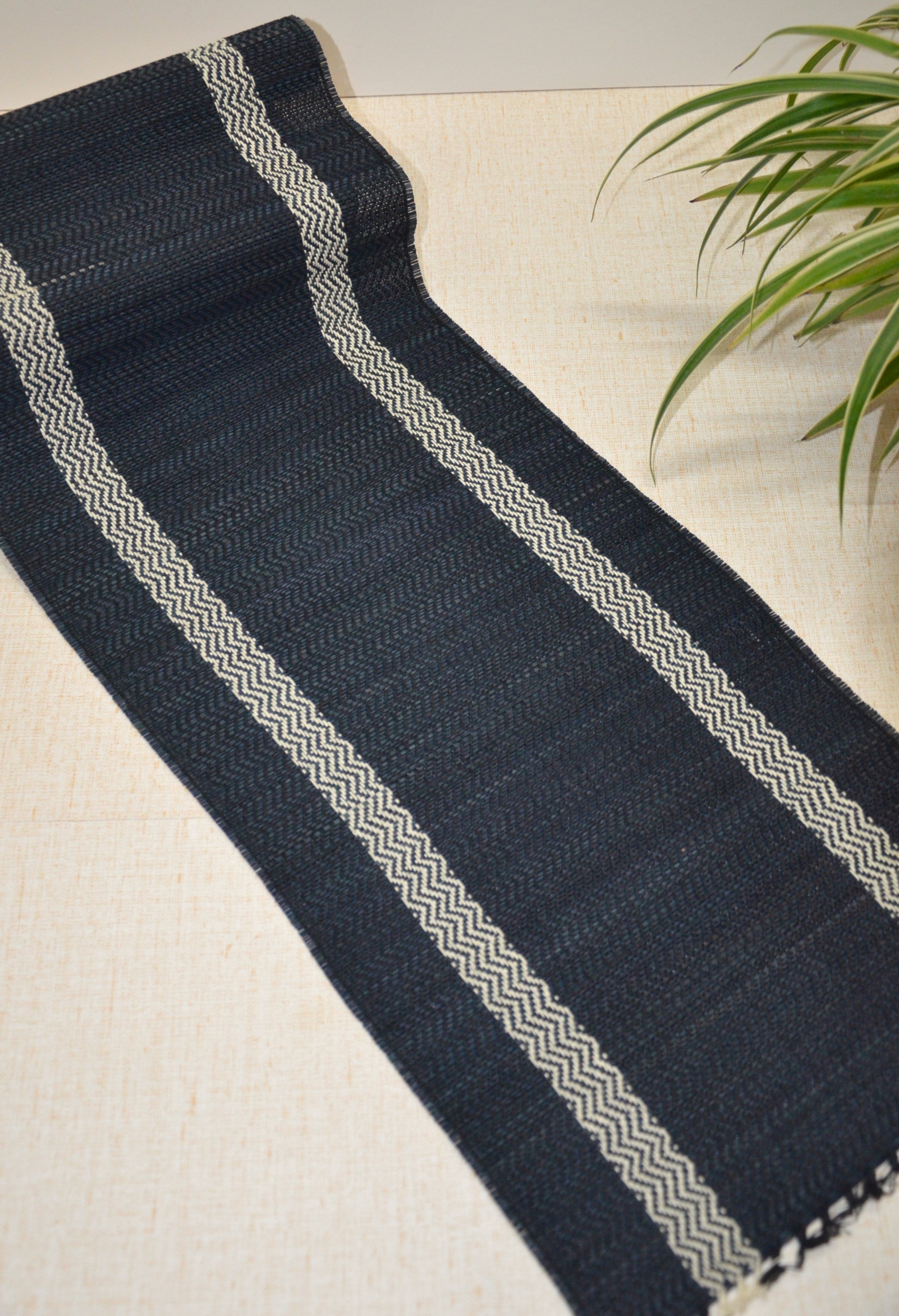 Dharini Madurkathi Tassels Table Runner Charcoal