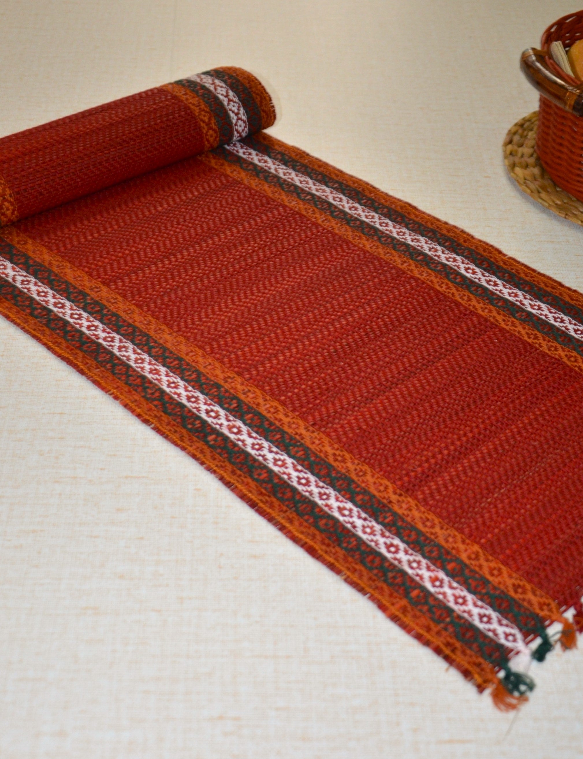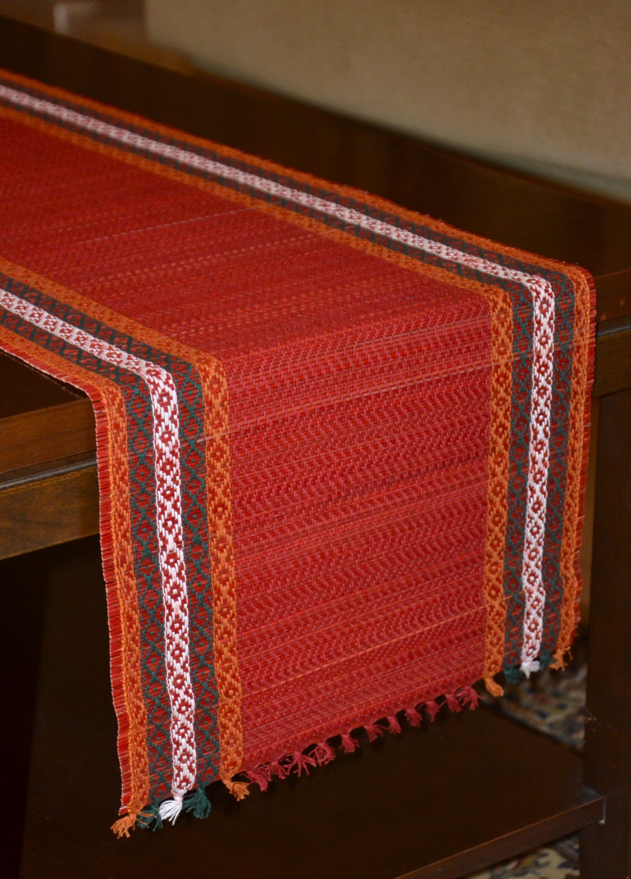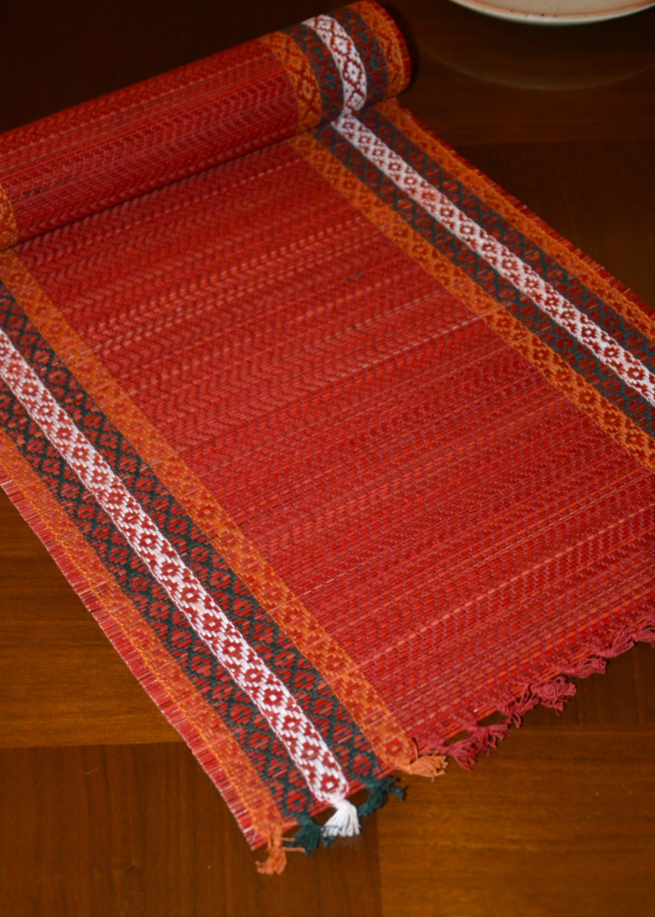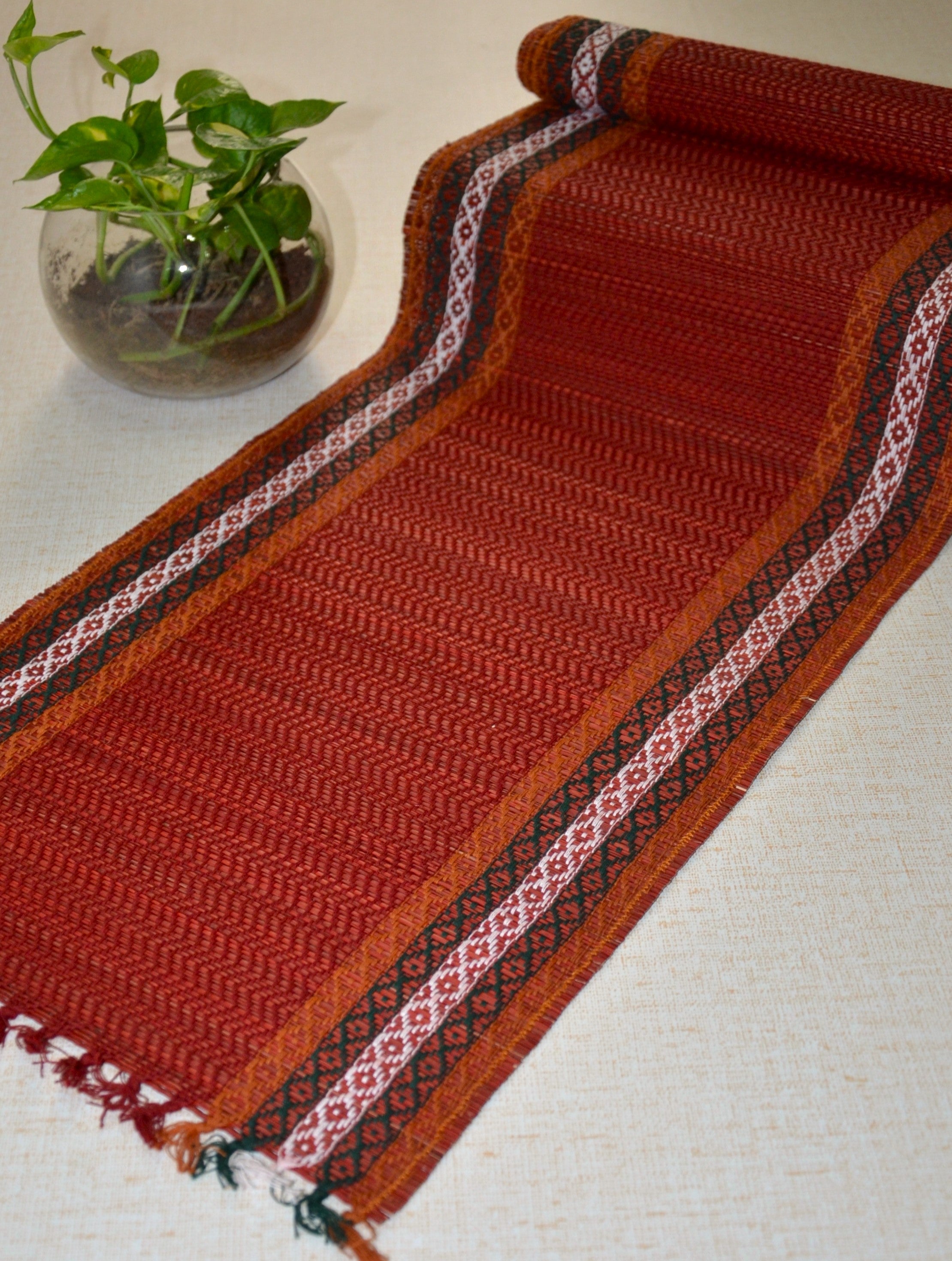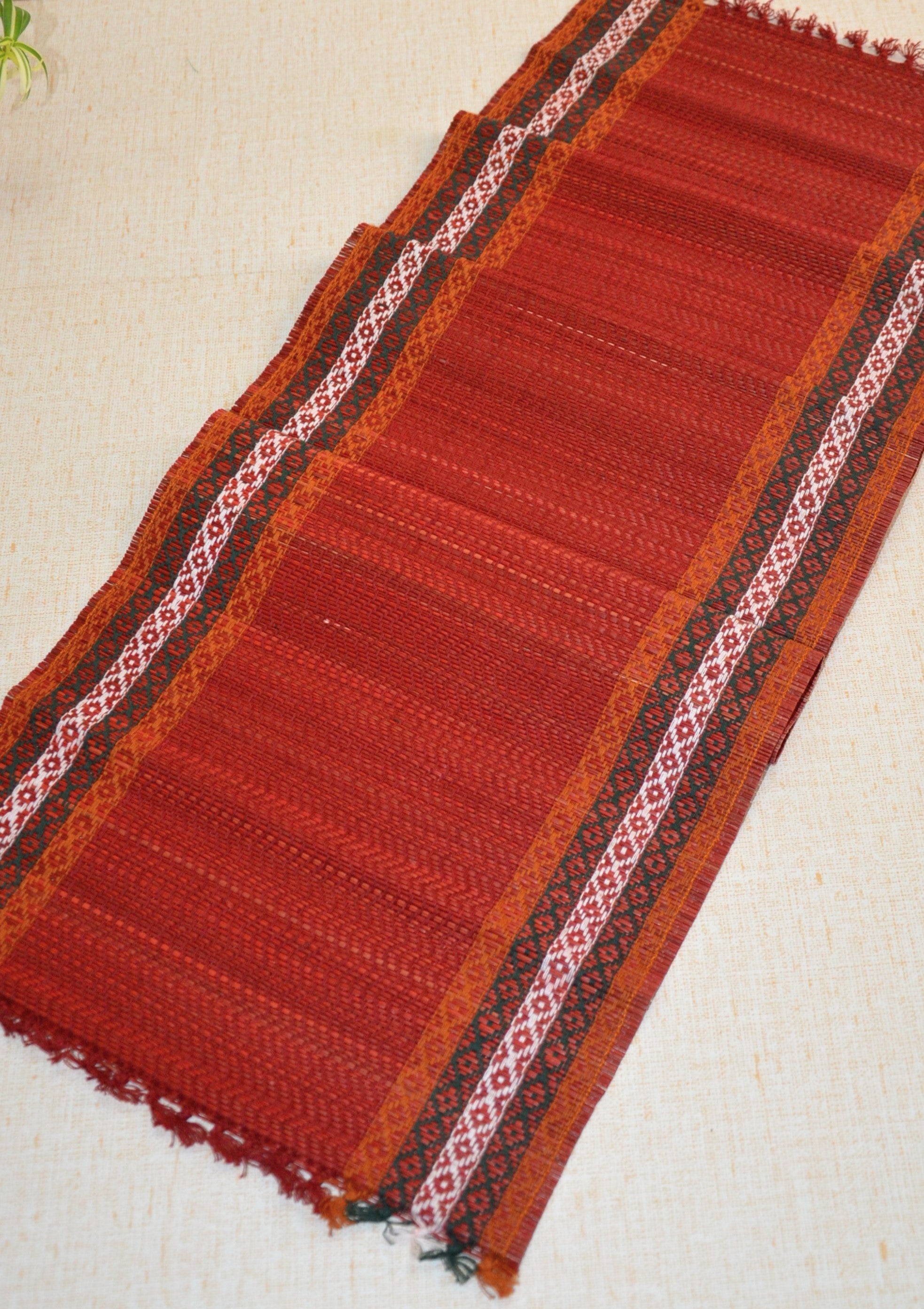 Eco-friendly table runner made from Madurkathi reed and beautifully interwoven with coloured threads.