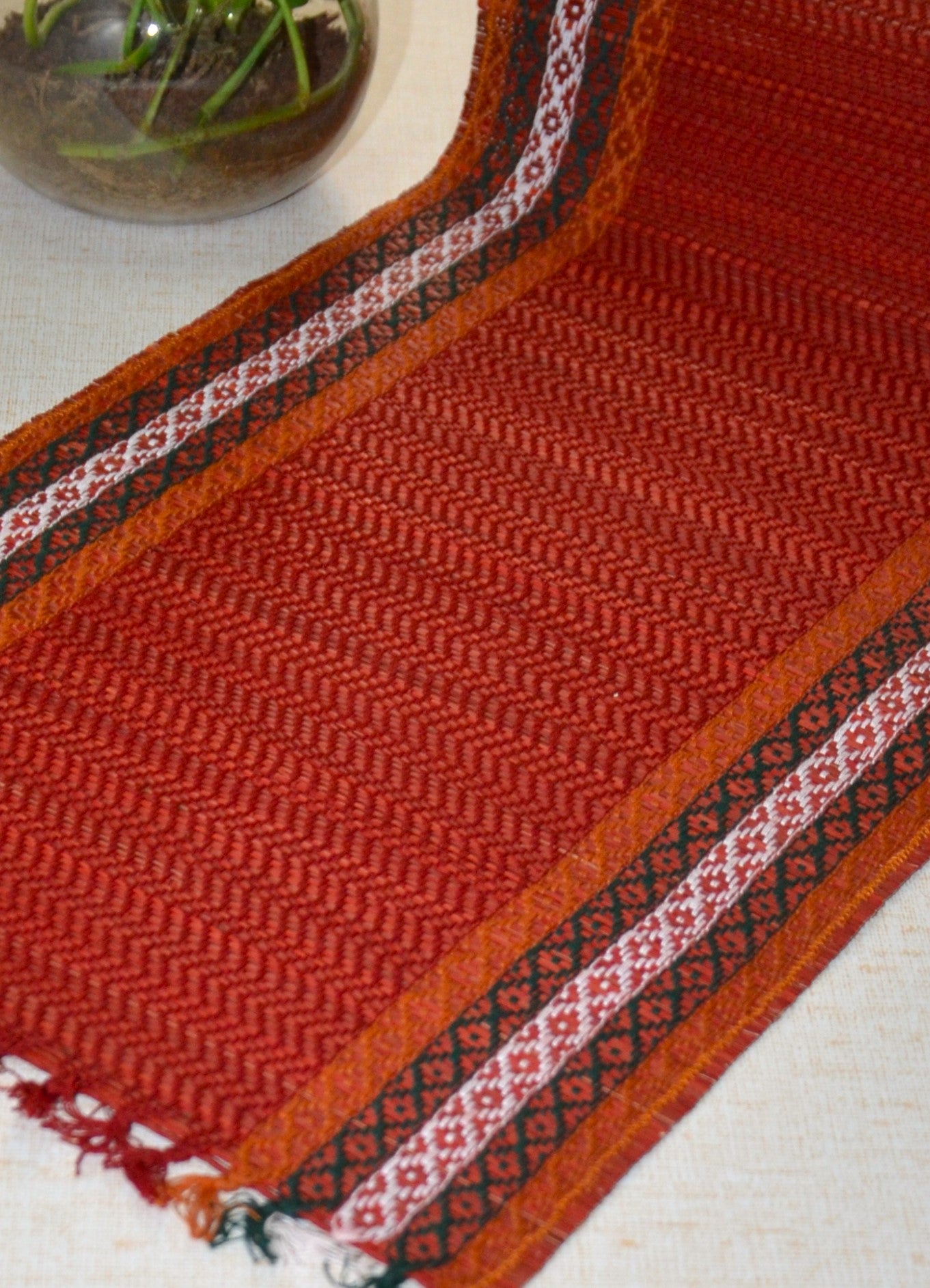 Dharini Madurkathi Tassels Table Runner Maroon