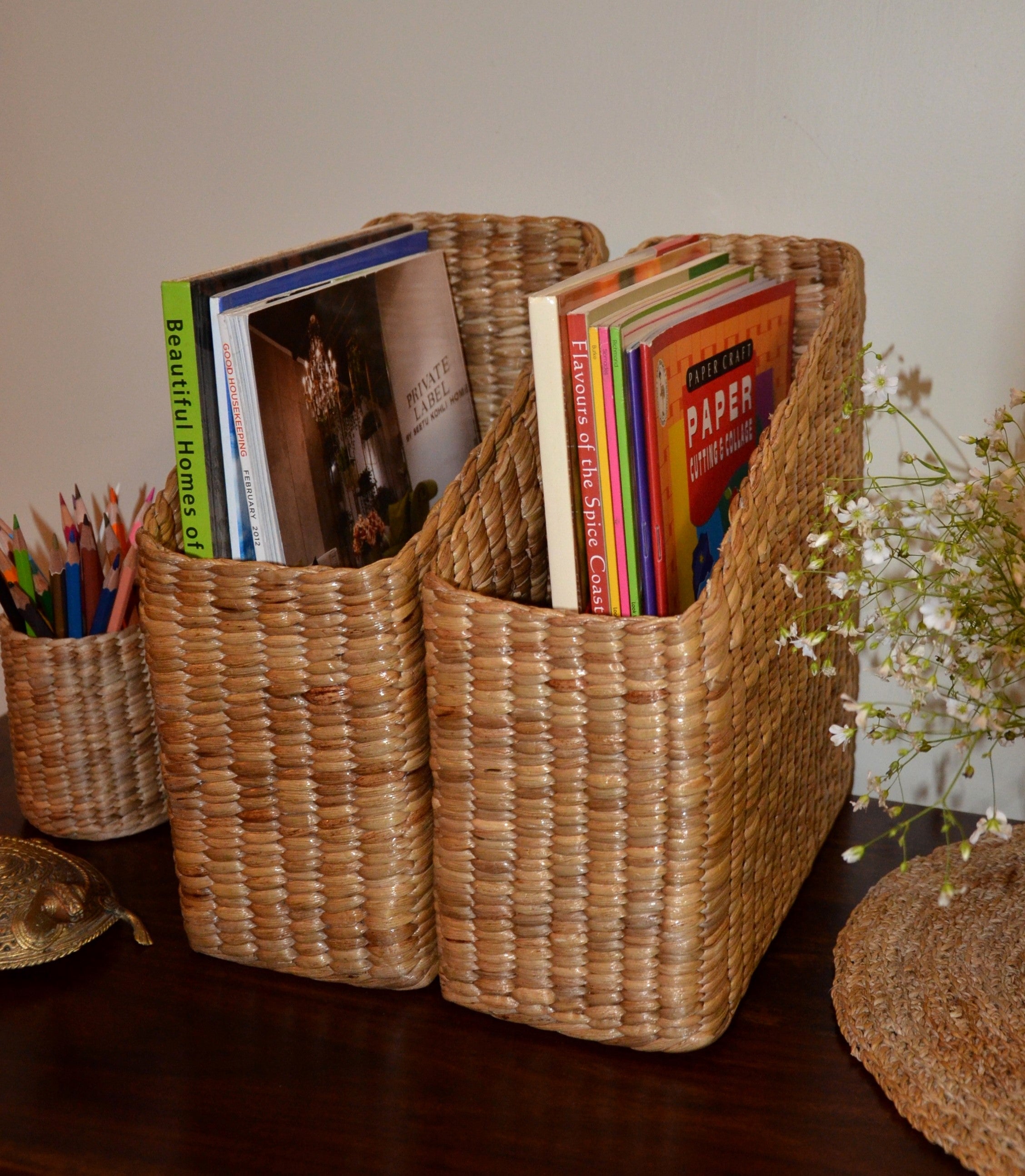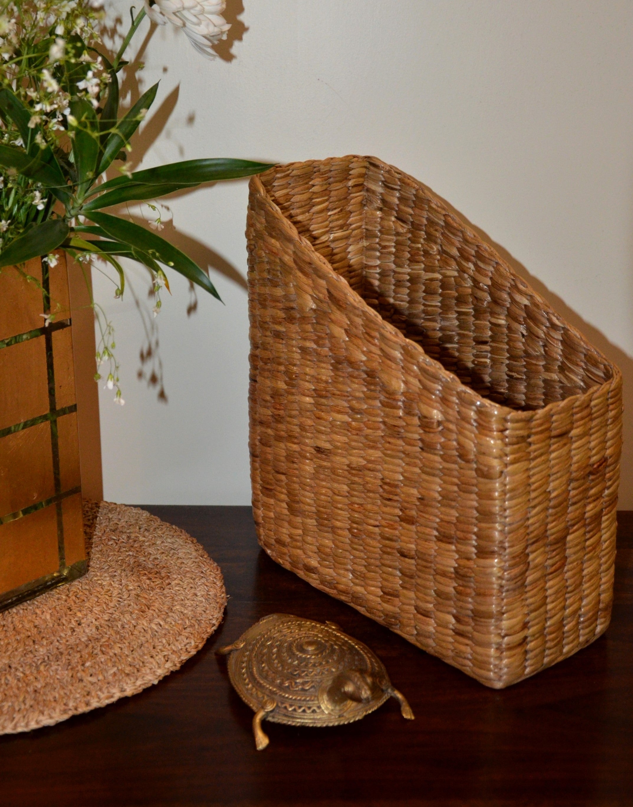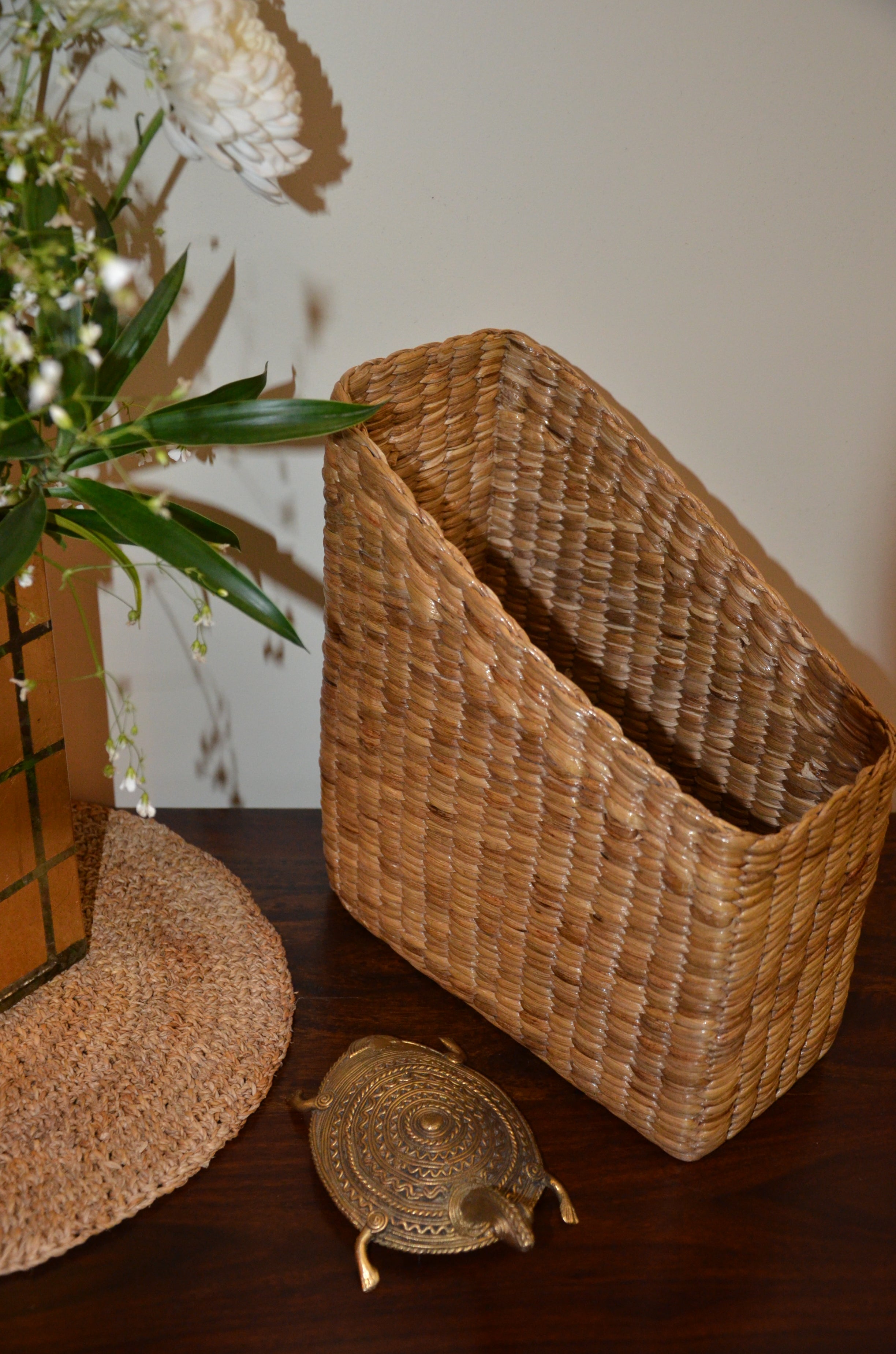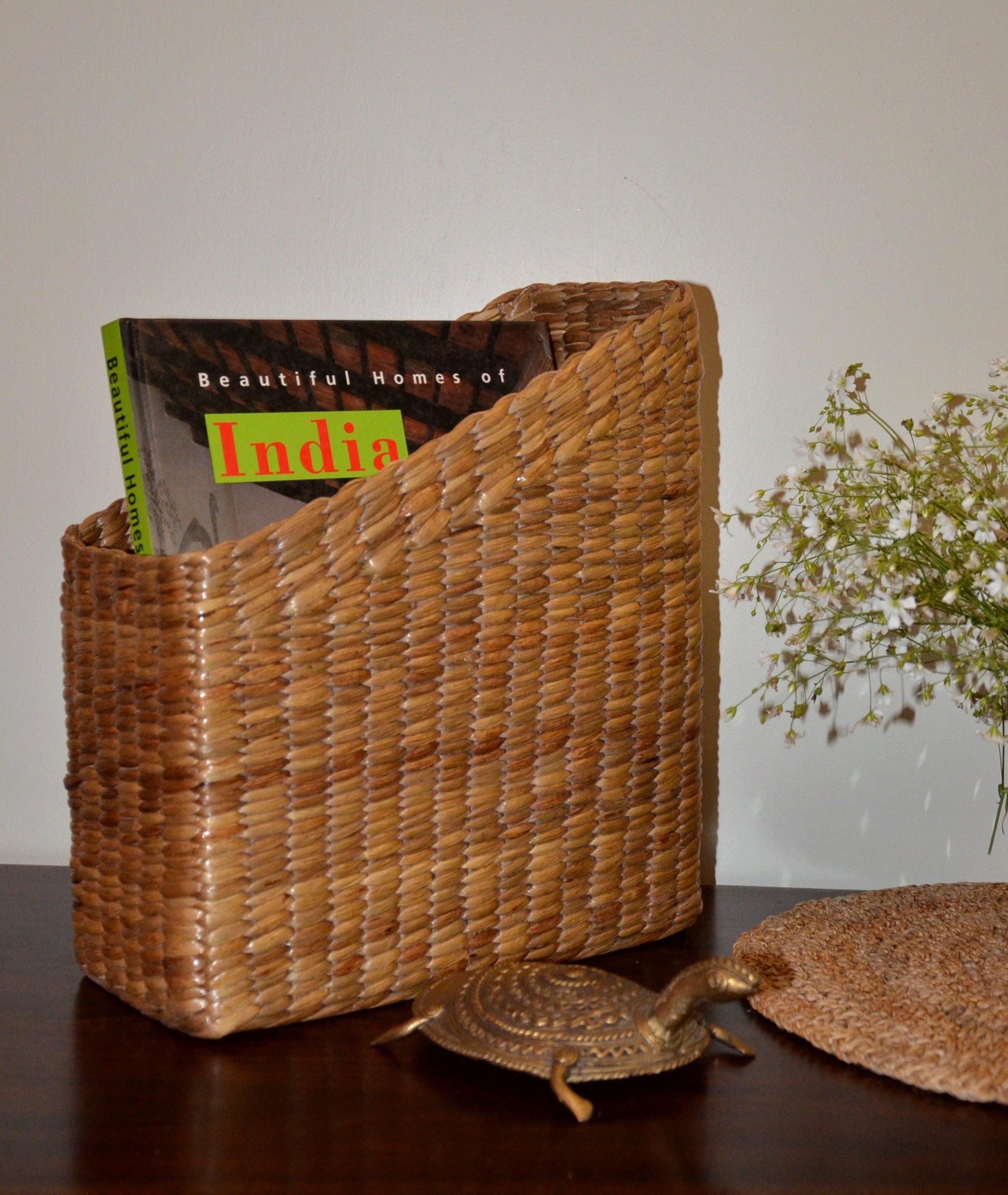 Magazine & File Holder handcrafted of Water Hyacinth. Great for organizing mail, catalogs, magazines, files and more. Its natural Water Hyacinth reed colour adds a rustic charm to your home and office. Comes finished with a coating of clear lacquer for easy maintenance. DHARINI products are handcrafted from eco-friendly and sustainable Natural Fibres. We bring together the incredible skills of artisans and master craftspeople from the remotest corners of the country, who have inherited and perfected their art over generations.