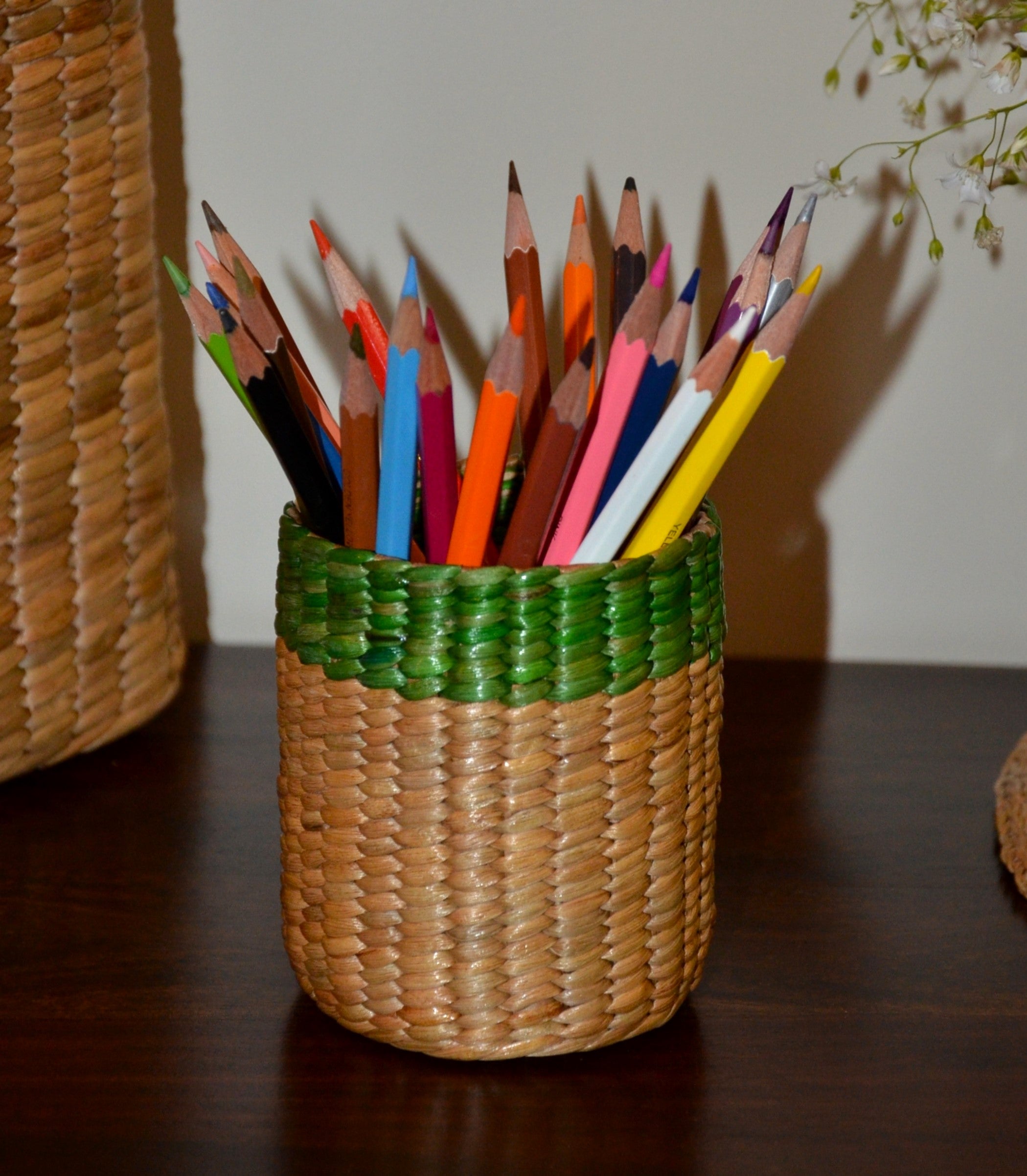 Add an earthy touch to your home and office with this handcrafted Water Hyacinth Pen & Cutlery Holder. Can also be used as a napkin holder, a vase etc.