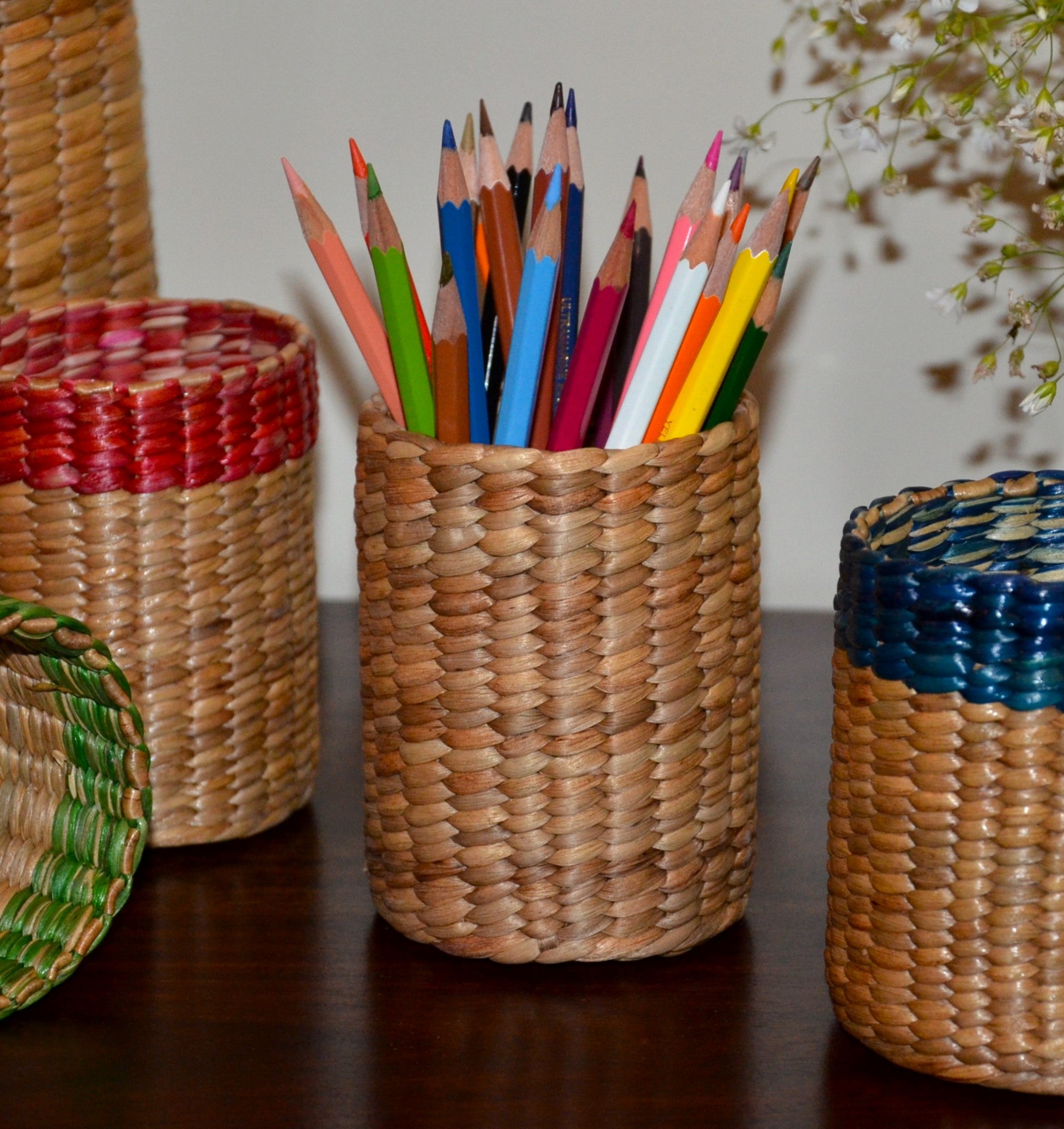 Add an earthy touch to your home and office with this handcrafted Water Hyacinth Pen & Cutlery Holder. Can also be used as a napkin holder, a vase etc.