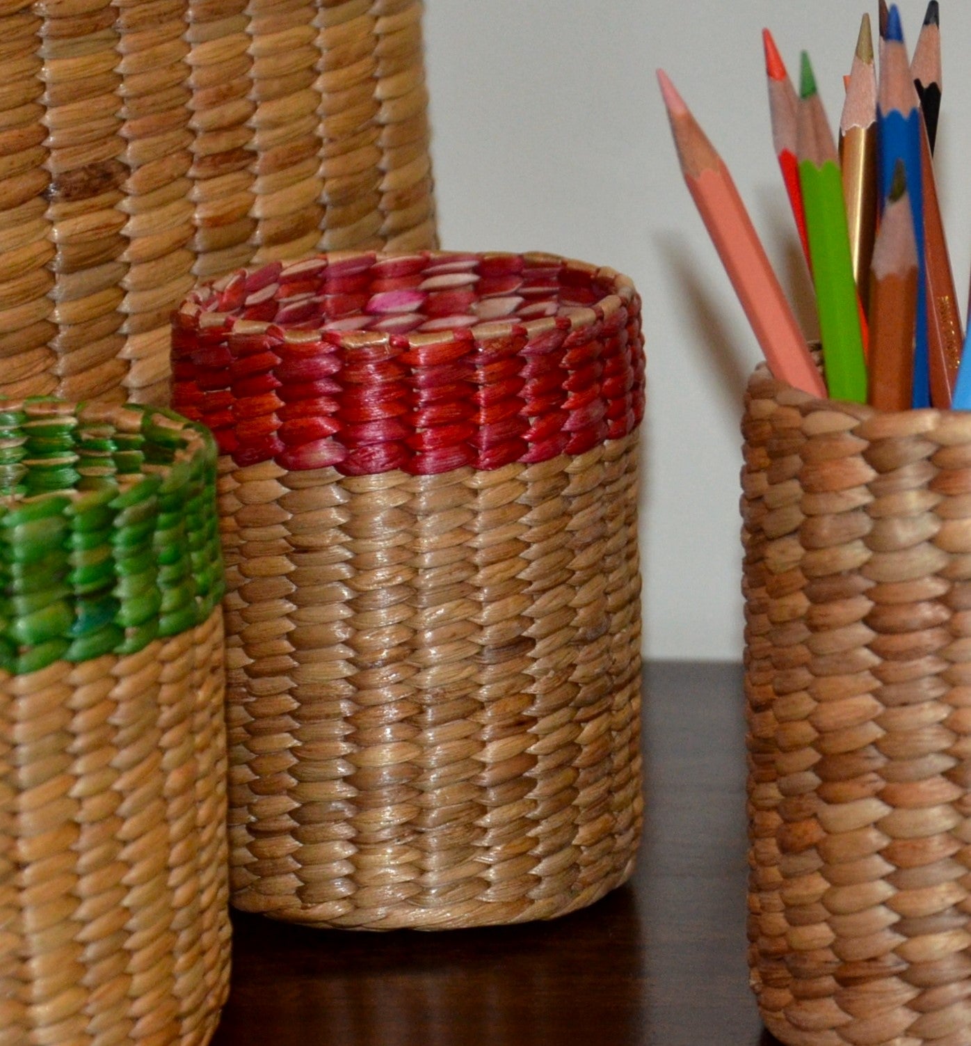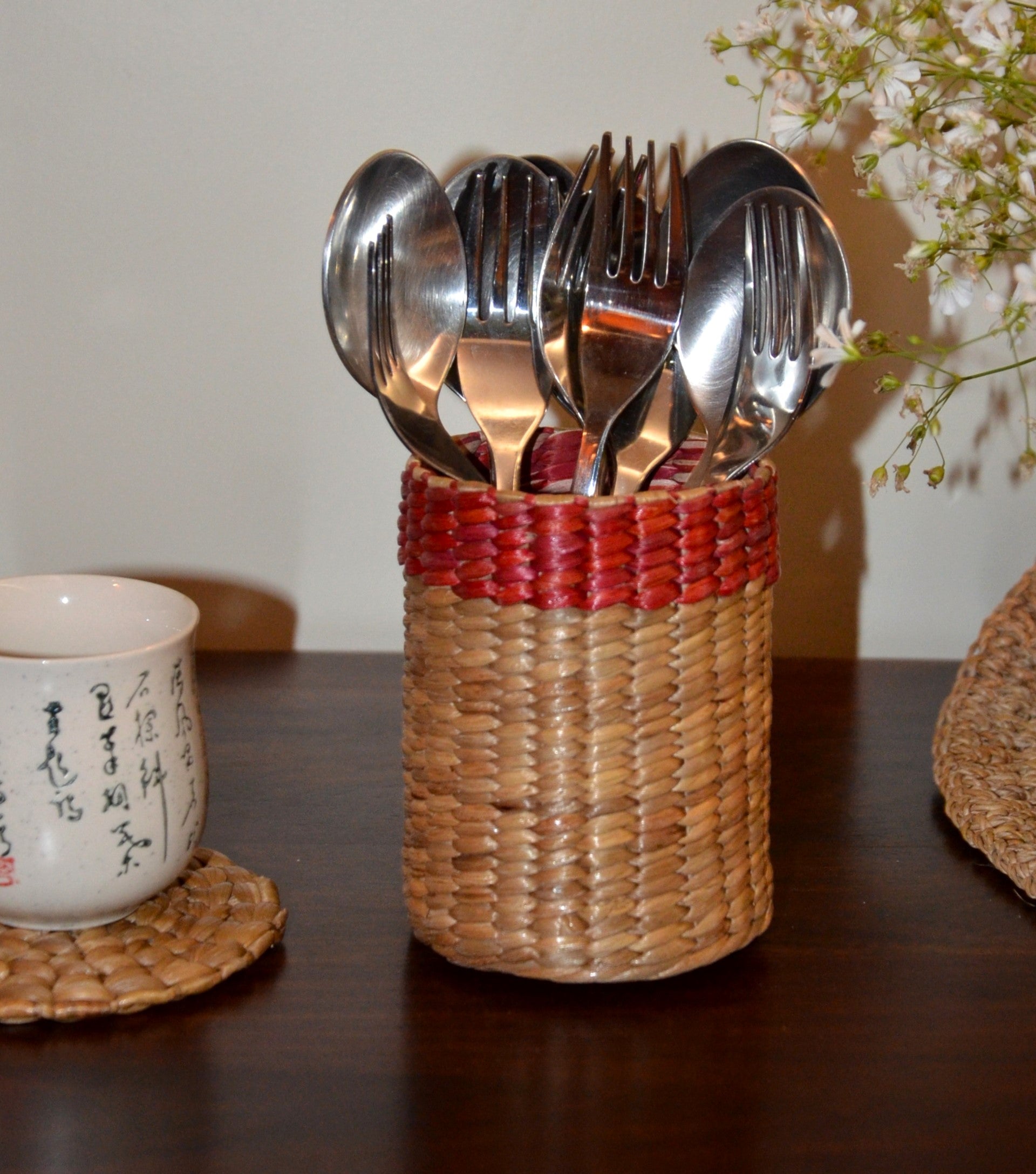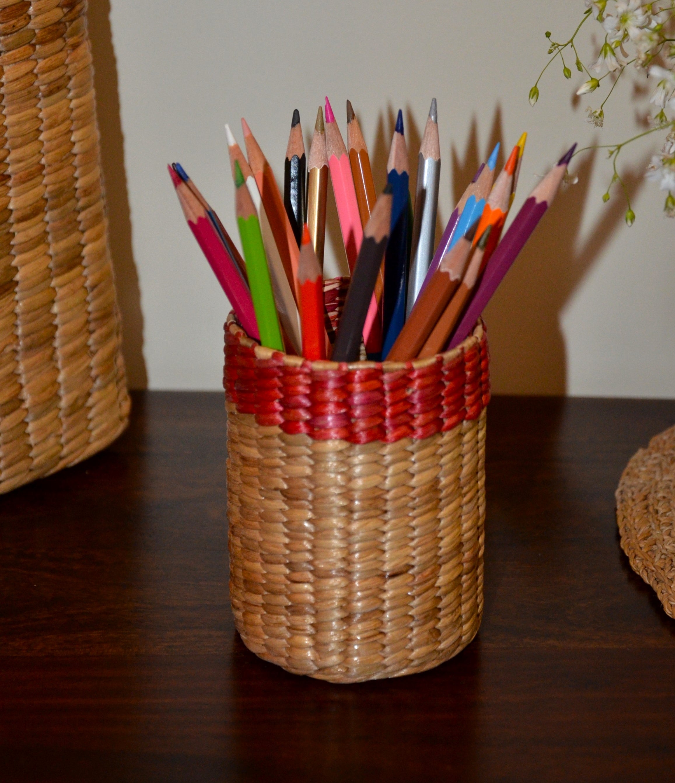 Dharini Water Hyacinth Pen & Cutlery Holder Red Natural