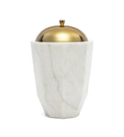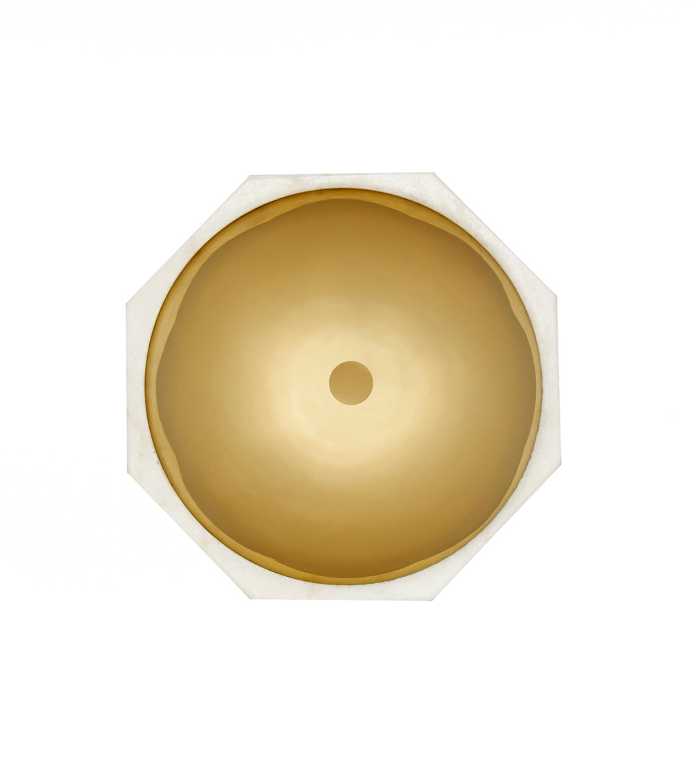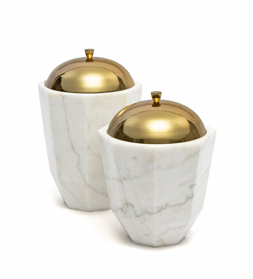 Facet canisters, is one a perfect of amalgamation of design with crafts.It is carved in white marble with hand carved facets on the outer surface and smooth circular form inside the canister. The lid is made in brass through metal spinning technique.