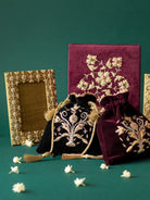 ‘Guldasta’ (Small) Potli | Zardozi on Dark Blue Velvet