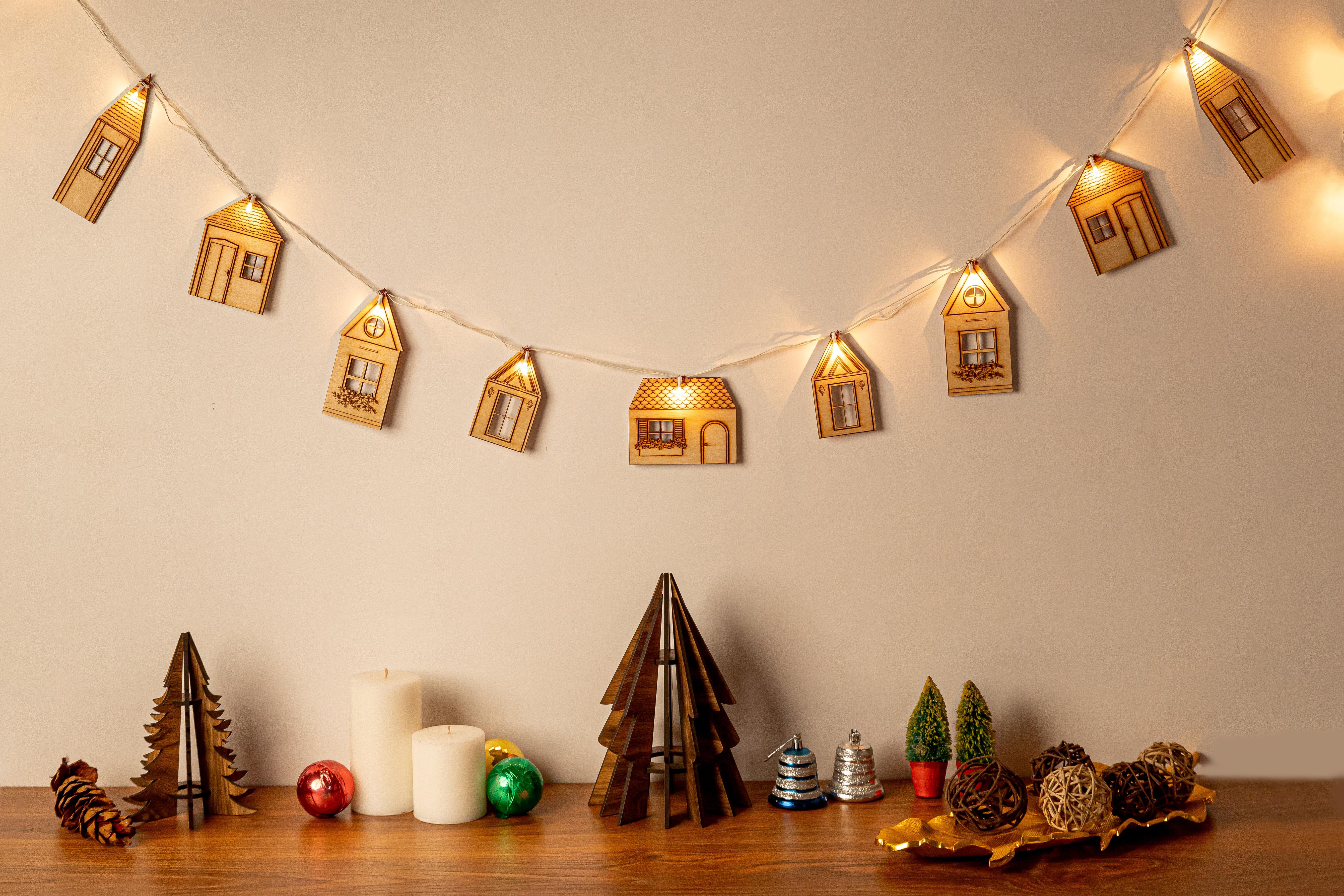 Harlow is a charming bunting by Think Artly that can be added to your decor anytime of the year. Light it up to see how magically it adds up to any occasion and add that festive feel. The bunting has Nine houses made of Birchwood and are intertwined with a LED light of 3 meters. The houses are super detailed by engraving and through cut which makes this bunting all sorts of whimsical.