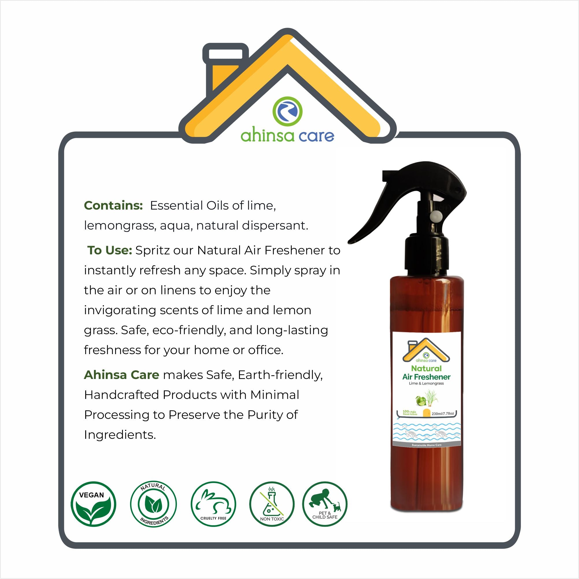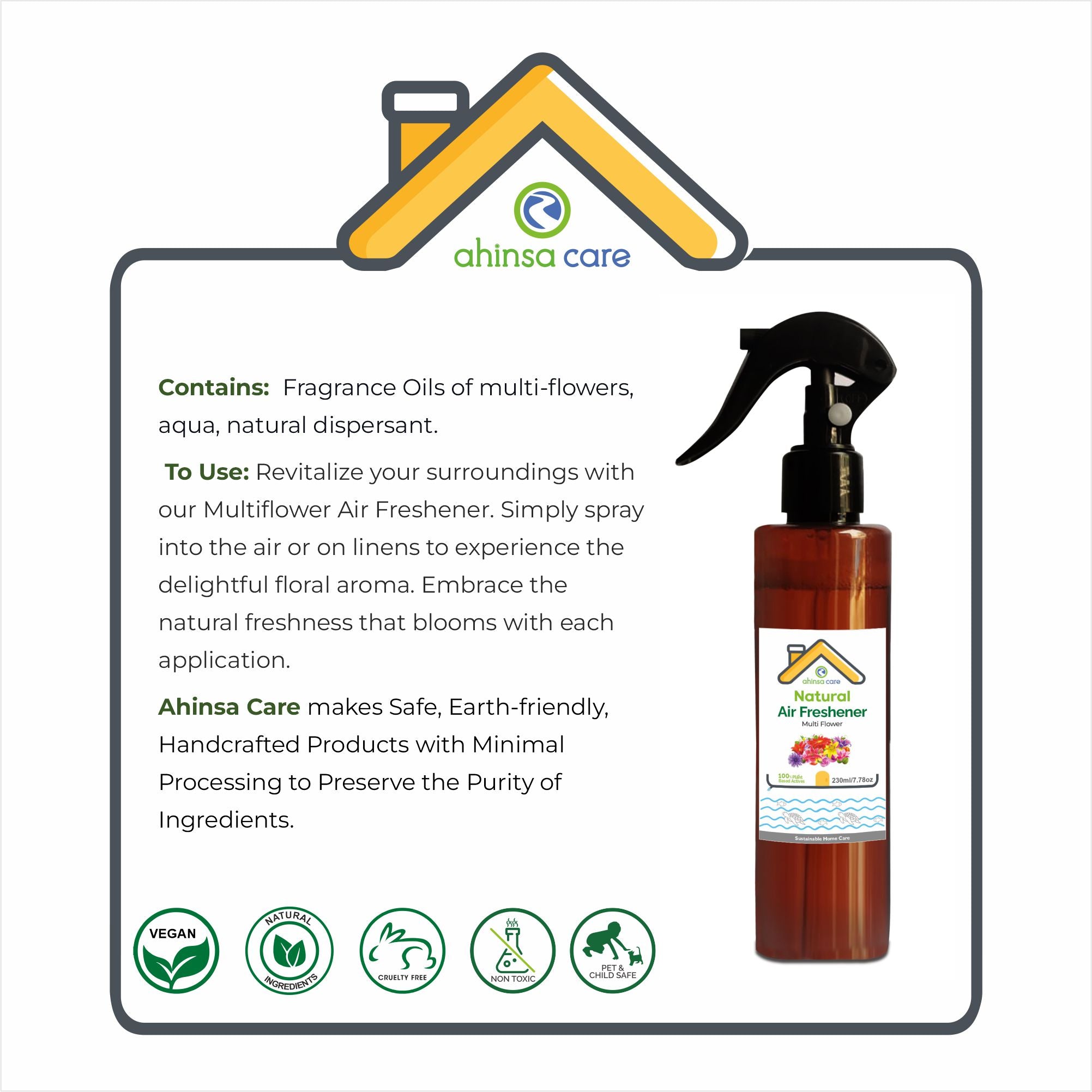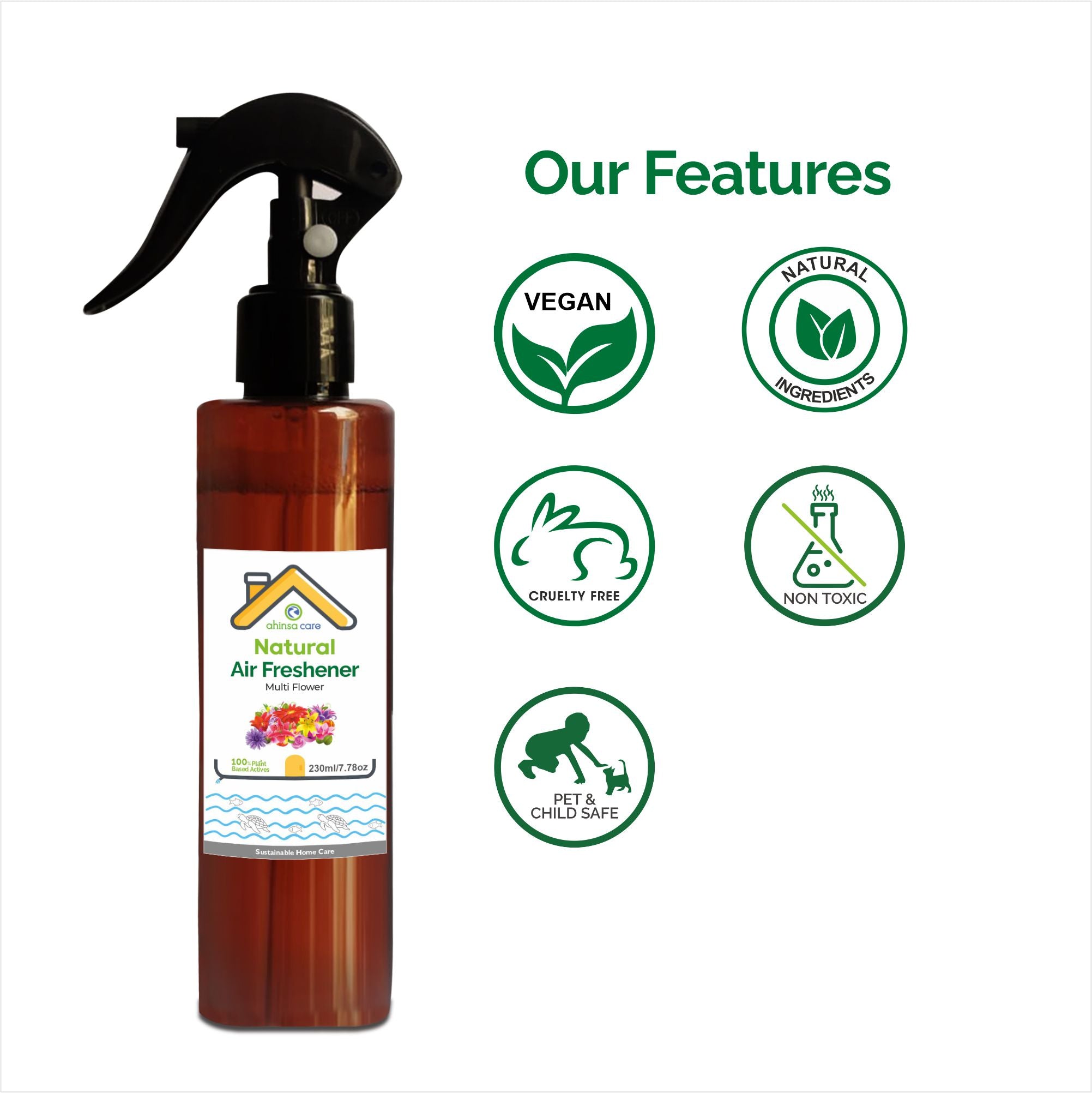 Introducing Ahinsa Care Natural Air Freshener, for a fresh and inviting home environment. Crafted with care using natural ingredients, our air freshener offers a delightful scent that rejuvenates any space.