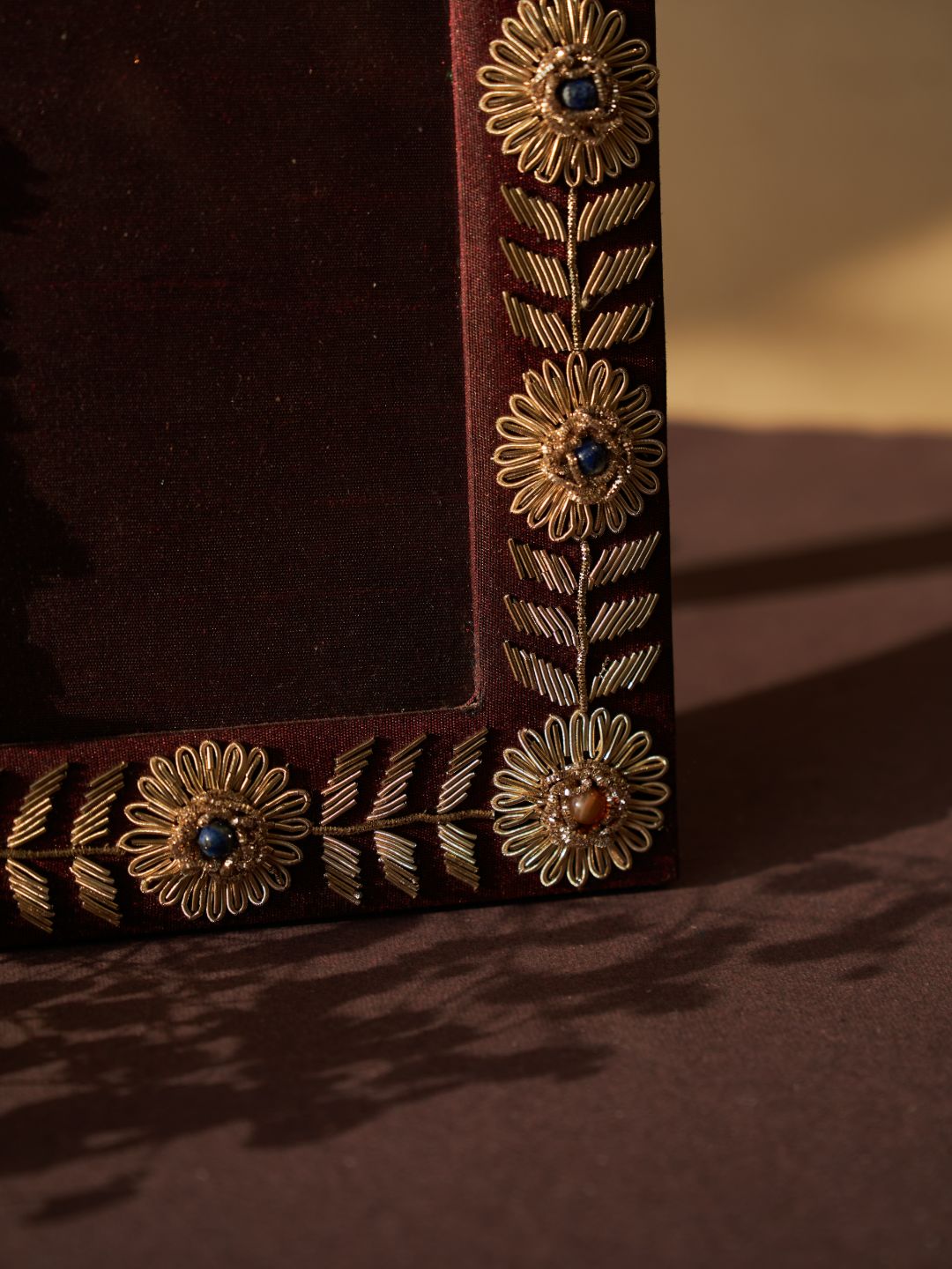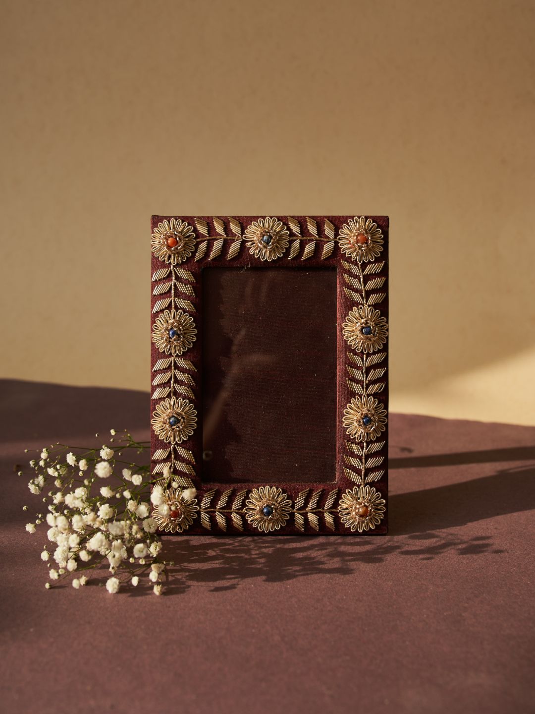 Basked in the golden rays of sun and the Scarlet reds of roses, these Zardozi photo frames will treasure the most beautiful moments of your life within itself.