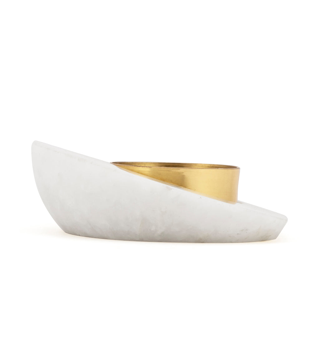 Carved from one single piece of white marble and black marble, these Sangemarmar tea-light, is a perfect blend of traditional and contemporary design. With its geometric form and detailed curved form give them a very modern outlook.