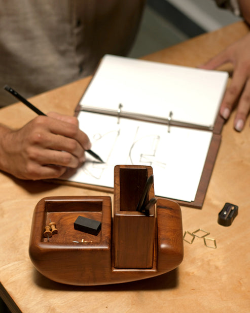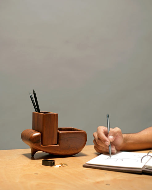 The Sculp stationery holder is a piece that inspires, while it sits on your desk in it’s sculptural form. Handcrafted in reclaimed teak artfully, the Sculp becomes a companion for your creative and contemplative hours spent at your work tables.