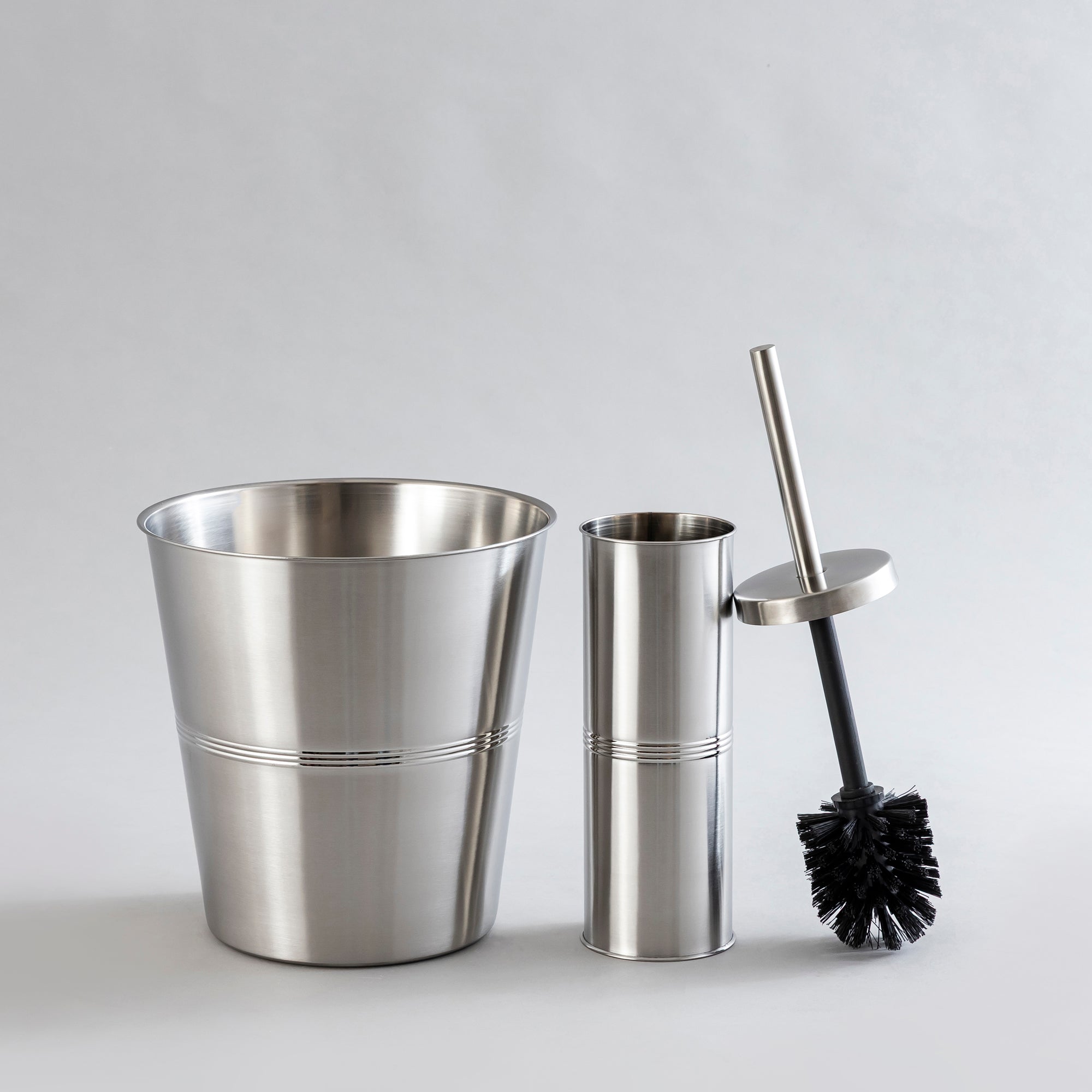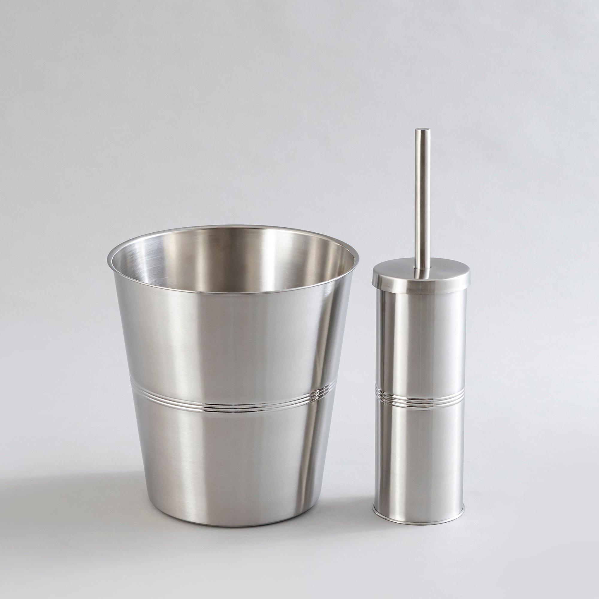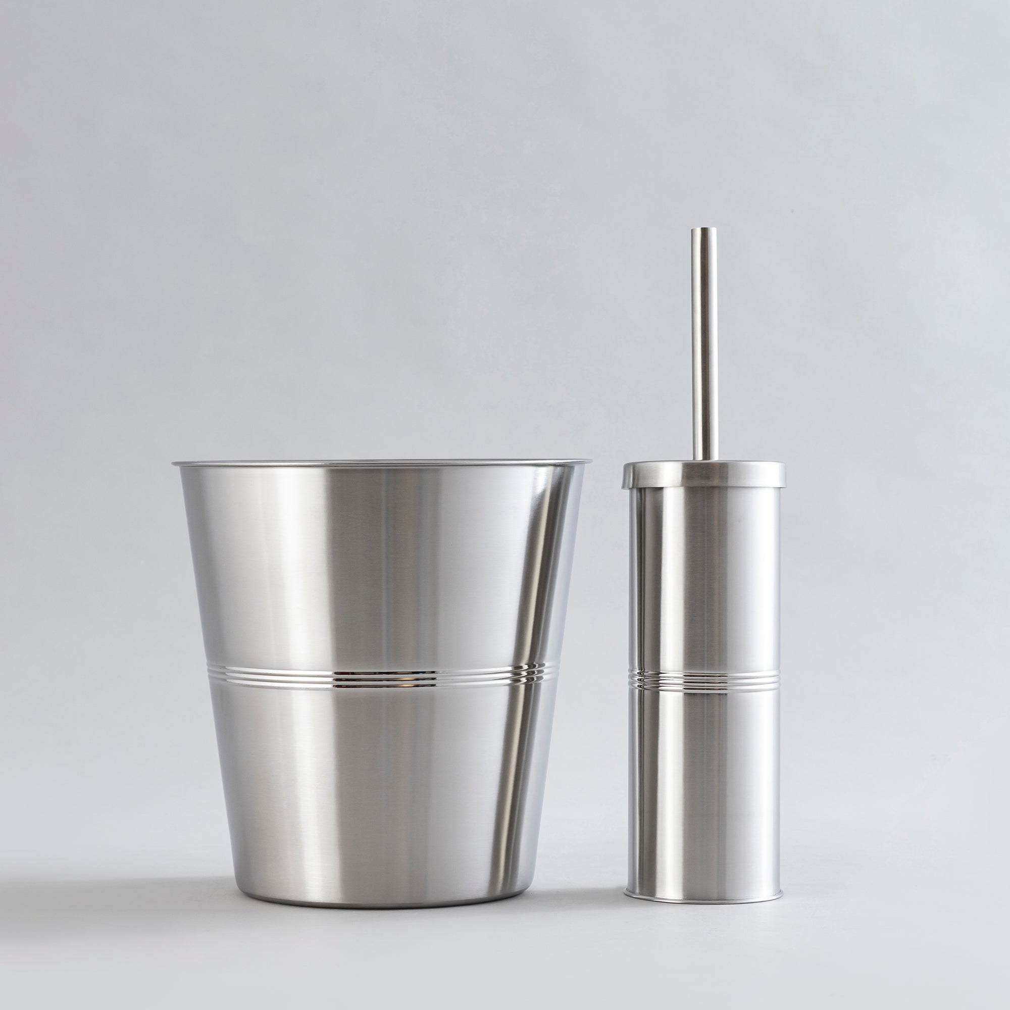 Shiny stainless steel waste bin and brush holder combo. Style 3