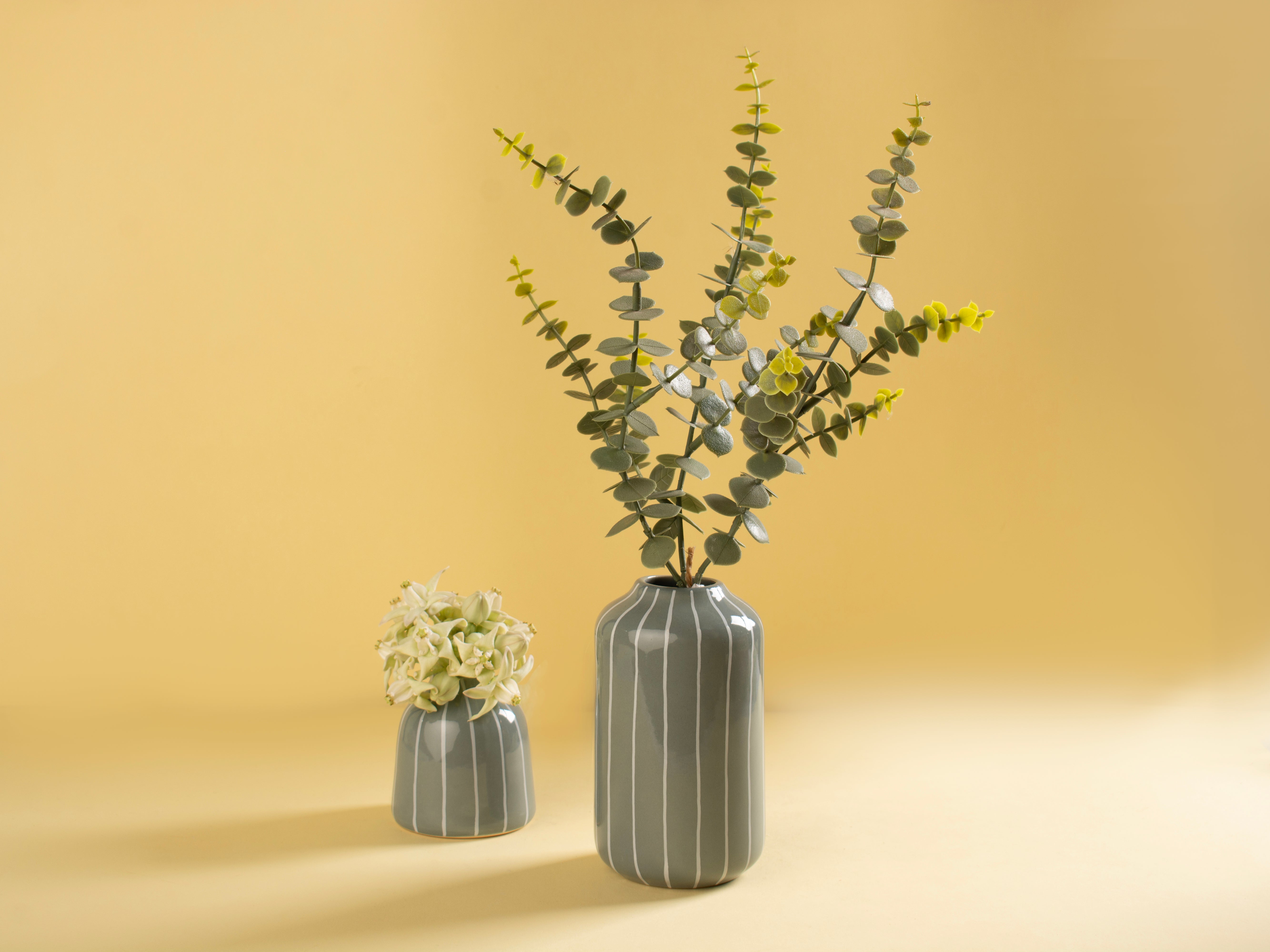 Elevate your greenery with this elegant ceramic planter pair, featuring minimalist vertical line patterns in soothing earthy tones. Handcrafted by skilled artisans, these planters are perfect for succulents, small indoor plants, or simply as decorative accents. Their clean, modern design makes them a versatile addition to any room — bringing a calm and sophisticated vibe to your space.