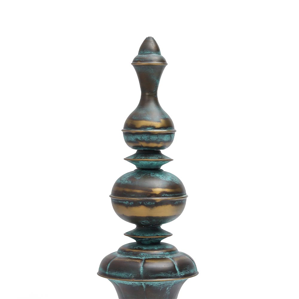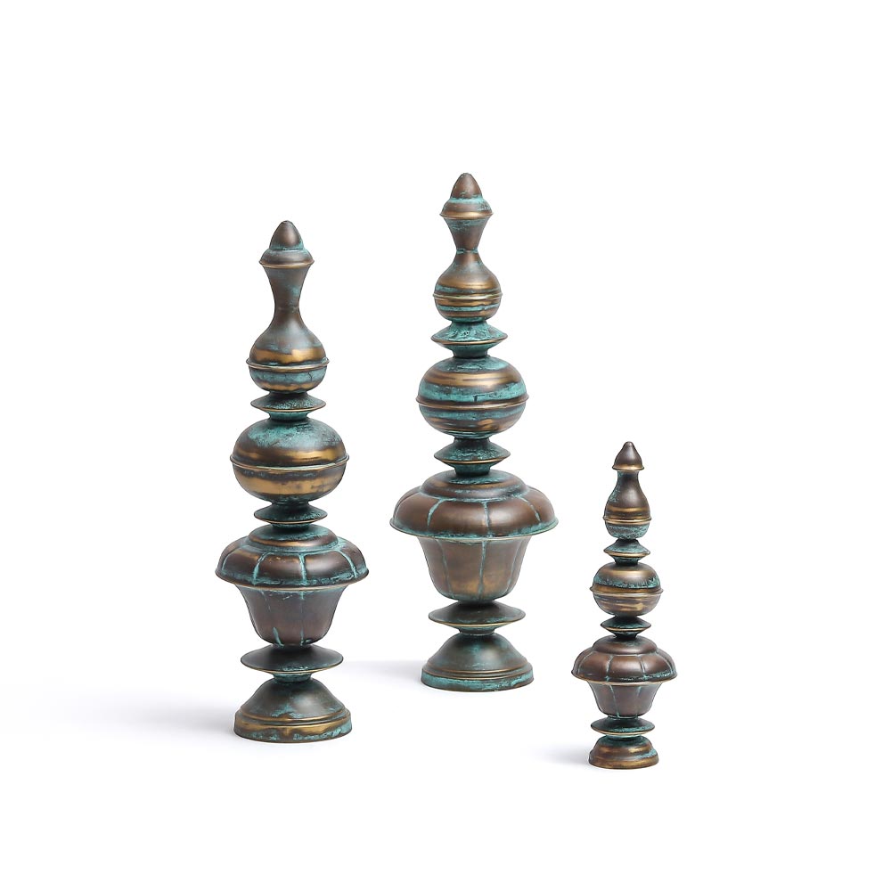 An elegant trio of Patinated Brass Temple corners are inspired from Hindu temple tops. A unique blend of modern and traditional era. These handcrafted temple corner will definitely brighten up your home. The organic form of it gives a comforting feel, whereas, the effect of patination makes it one of our classic pieces.