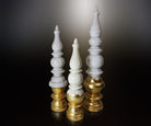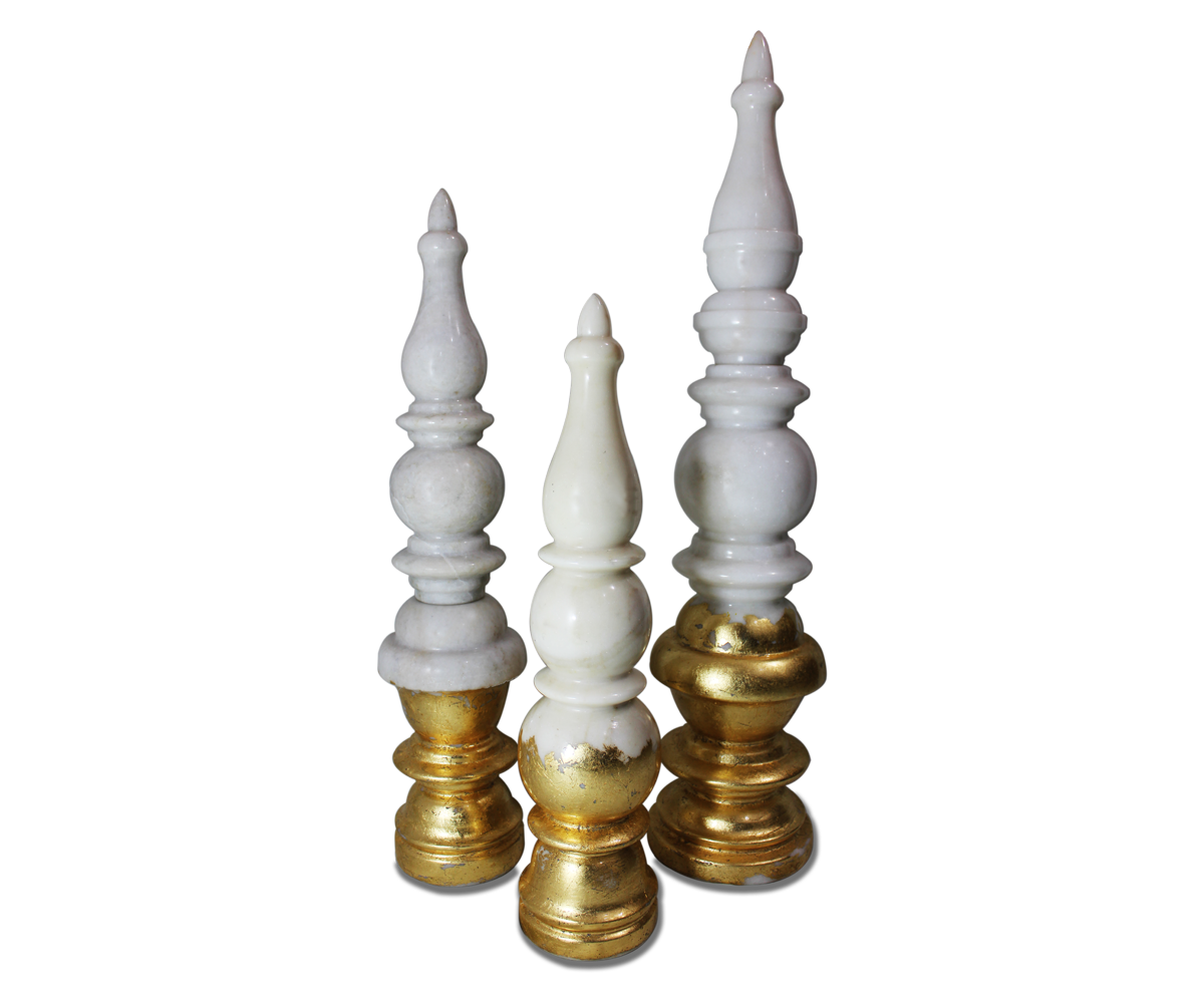 An elegant trio of gold leafed marble tops, inspired from Hindu temple tops. A unique blend of modern and traditional era. These hand-crafted temple corner will definitely brighten up your home. The organic form of it gives a comforting feel, whereas, the effect of gold leafing makes it one of our classic pieces.